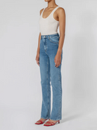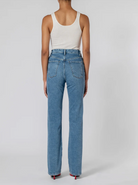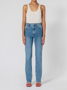 Our subtle bootcut jean. The Loretta Jean sits high on the true waist, is fitted through the hip, and falls straight to the knee with a subtle bootcut designed to fall over your shoe. Crafted from premium comfort stretch denim.