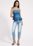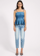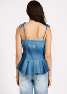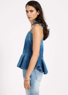 ONE TEASPOON Peplum Frill Cami Denim Top - Blue