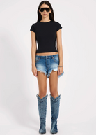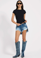 The PACIFICA BLUE ROLLERS LOW WAIST DENIM SHORTS are one of our most iconic styles — bold, rebellious, and made to stand out. With their signature extreme frayed hem, low-rise fit, and leg-lengthening shape, they’re a cult favourite for a reason. Designed to flatter with a short outseam and slightly longer inseam, they give you legs for days.