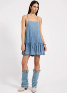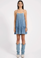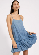 ONE TEASPOON Tencel Bubble Hem Mini Slip Dress - Washed Blue