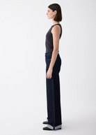 Our mid rise, wide leg cut that hugs through the waist & hips, finished with a clean-pressed centre leg fold and turned up cuff detail. Crafted in a premium comfort stretch denim