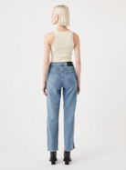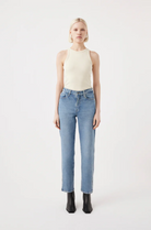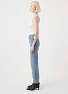 Our signature high rise straight leg, reinvented with an engineered side seam split. Fitted through the waist and hips, falling straight to the top of the shoe. Crafted in a premium stretch denim.