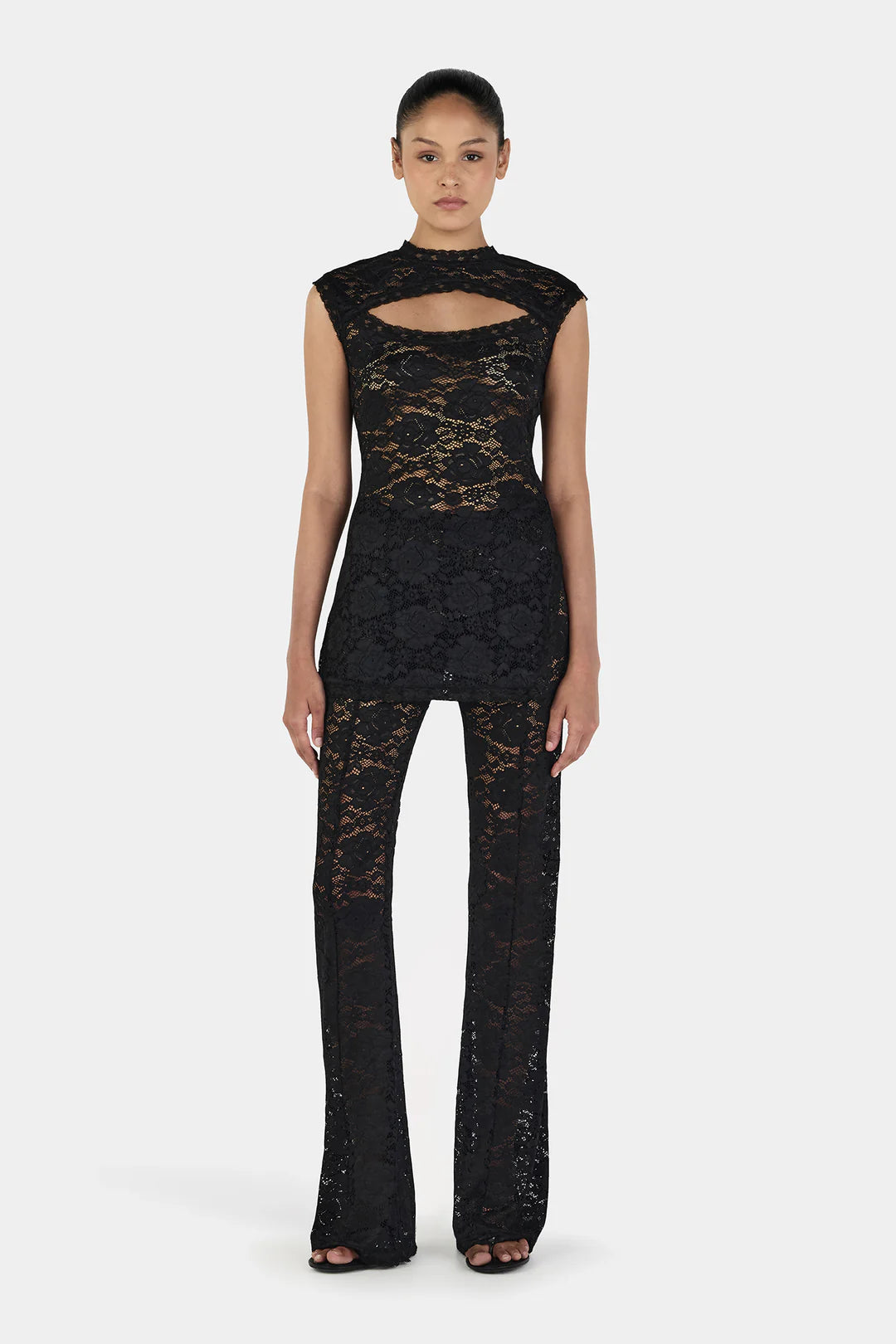 The Nabila Top in Ivory is a fitted lace top silhouette. Designed with an overbust cut-out detail, cap sleeves and delicate lace trim at the neckline, sleeve hem and hemline finished with a subtle side seam split. Pair with the Odessa Pant for the complete look.