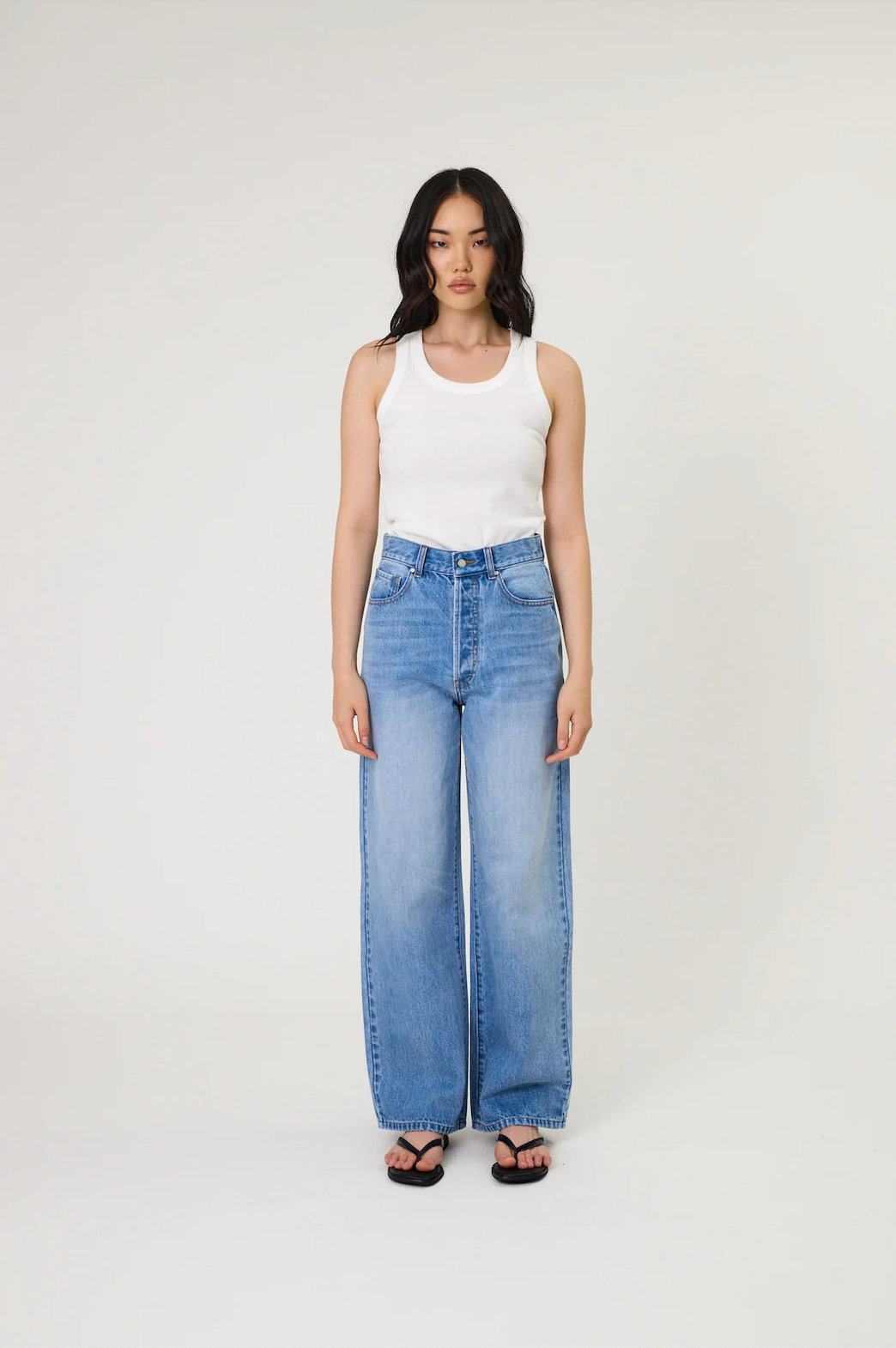 Designed with whiskering and fading at front and back to achieve that worn in look. A classic straight leg cut with a button front placket. Style back to anything and everything for endless outfits.