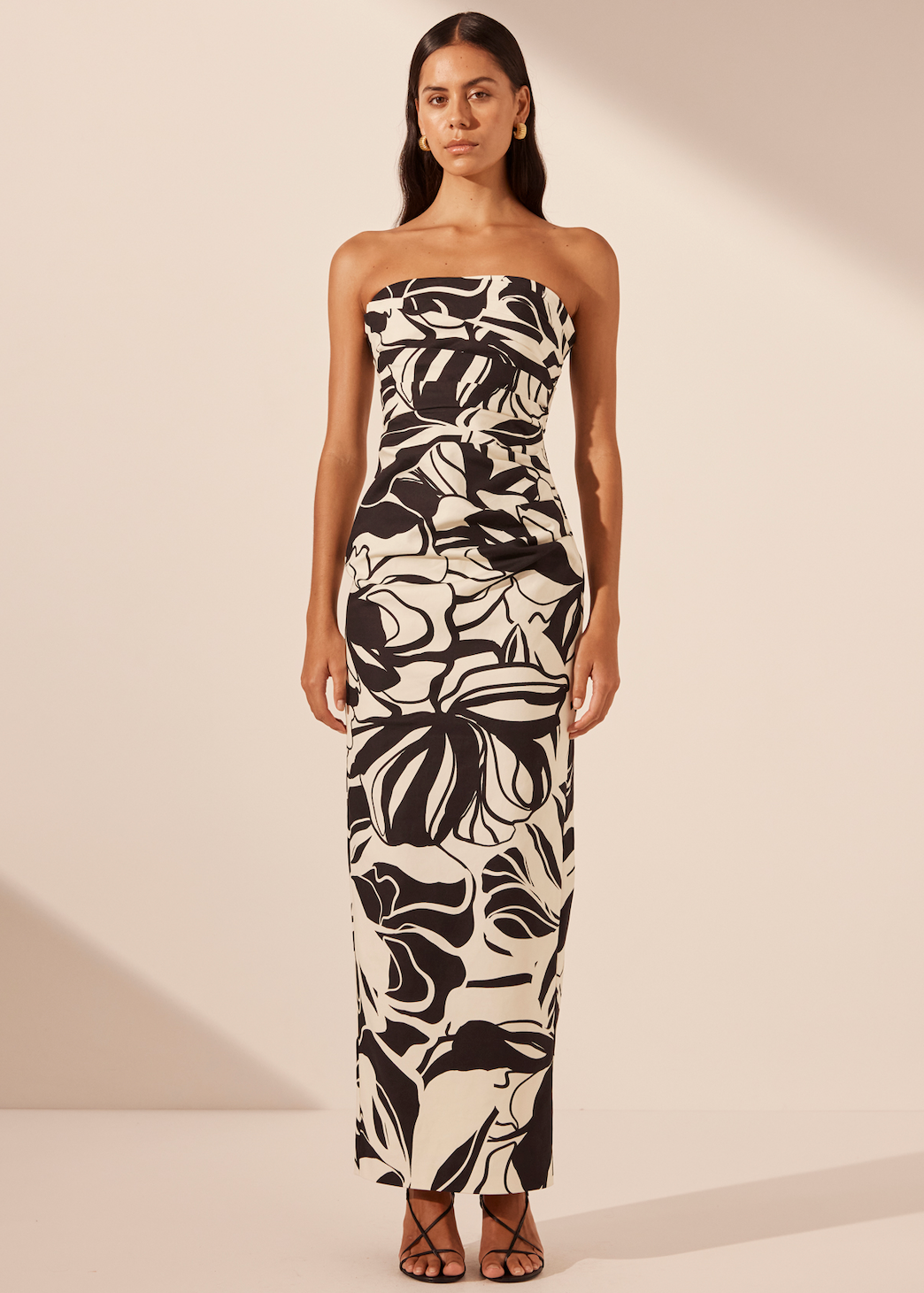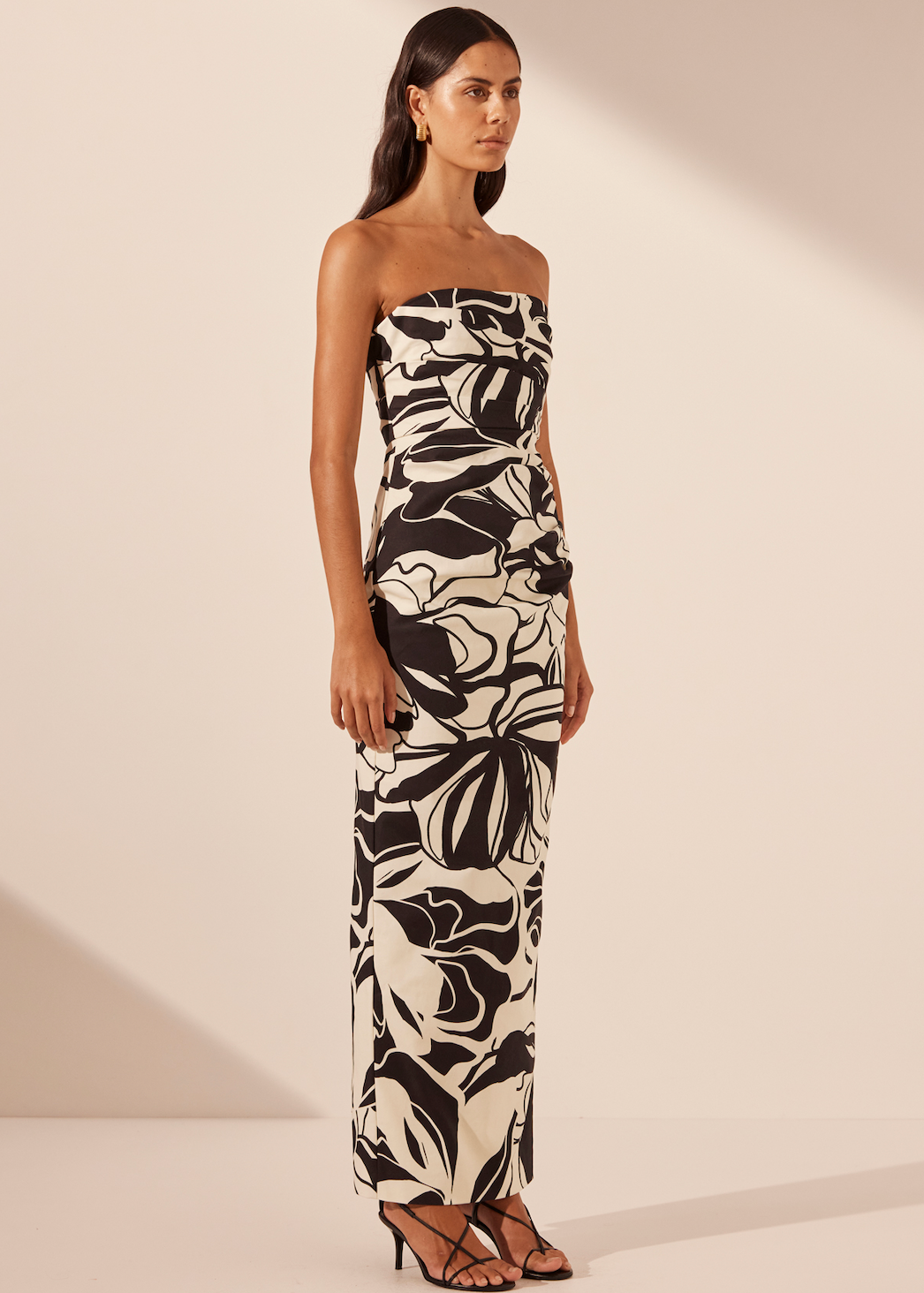 SHONA JOY Azize Strapless Draped Maxi Dress - Cream/Black