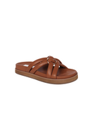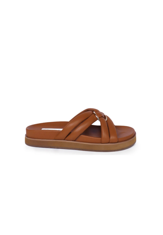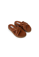 With a slight platform base, the Sienna Slide evokes an elevated day-time mood. Shaped with a dual crossover strap and adorned with a gold ring accent. Assembled in the softest leather and set on a comfortable moulded insole.