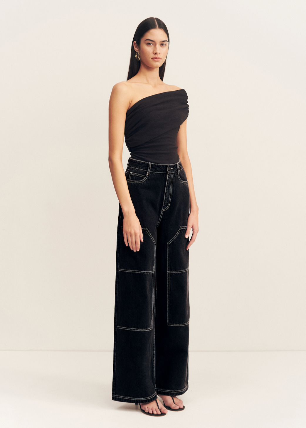 SHONA JOY Mercer Wide Leg Cargo Jean - Black