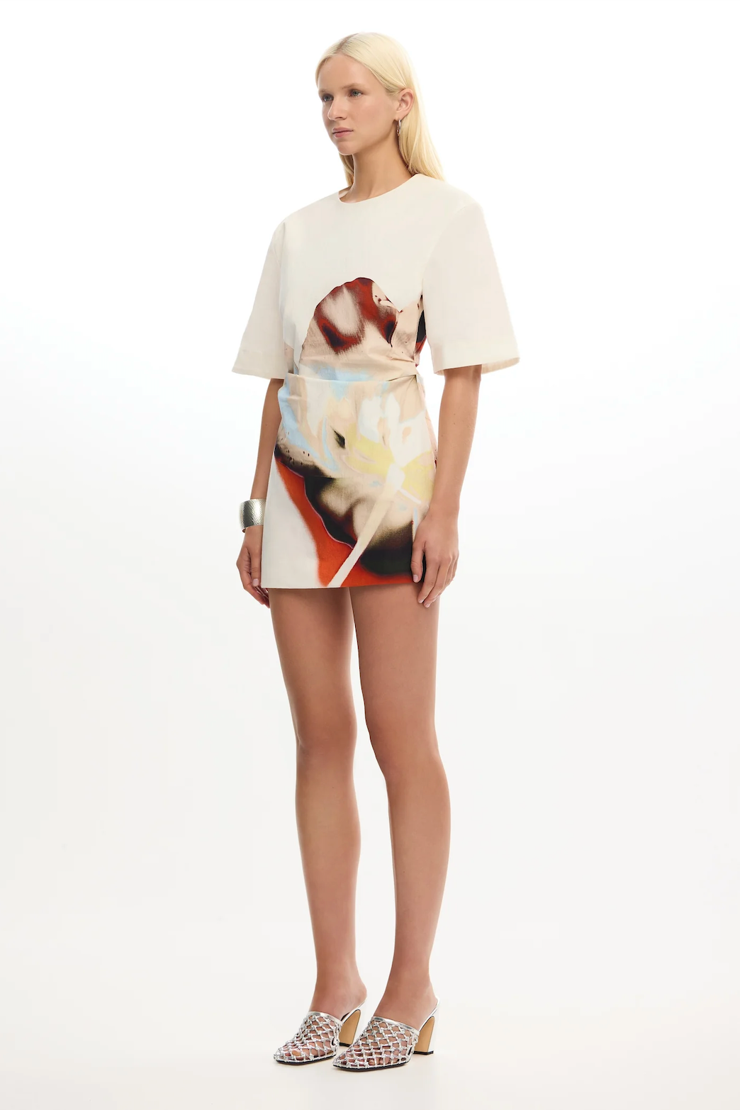Effortless yet eye-catching, the Astryd Mini Dress in Cinnamon Fleur is a modern take on print-driven dressing. The relaxed silhouette is balanced by tailored tuck details at the waist, offering a flattering shape. A vibrant placement print adds an artistic touch, making it the perfect go-to for dressier occasions. Pair with sandals for a chic daytime look or dress it up with a kitten heel.