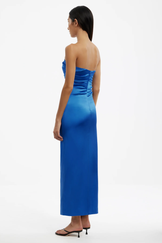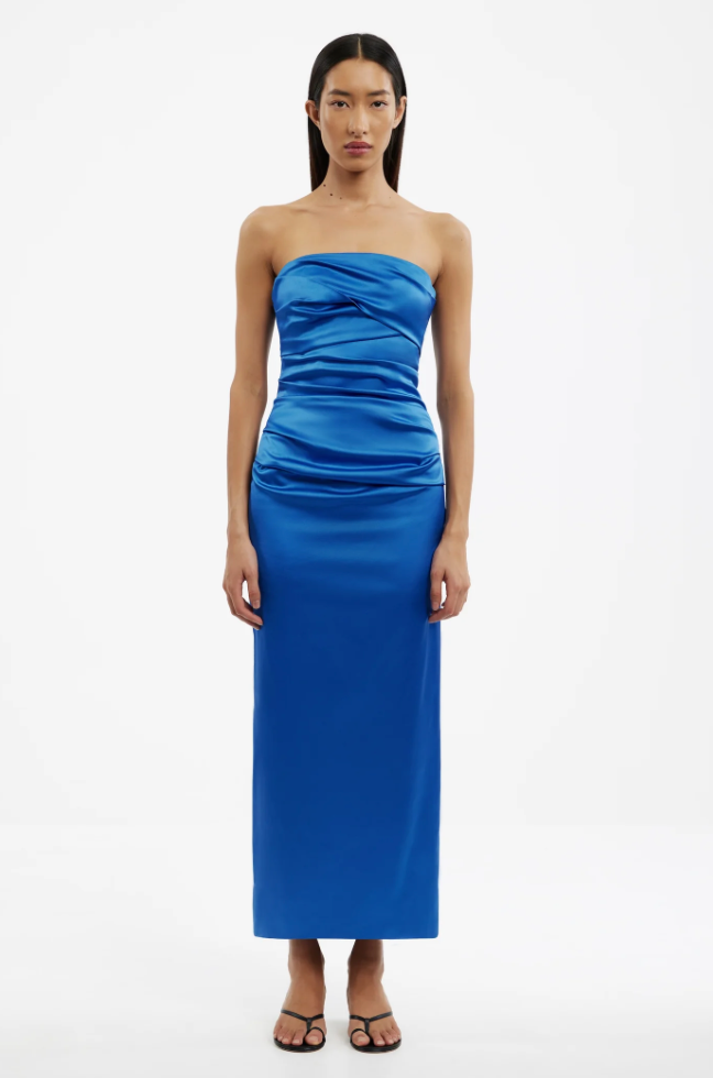 Striking in silhouette and colour, the Chantelle Midi Dress in Apollo is your go-to for formal events and after-dark occasions. Designed with a structured bodice and soft tucking through the body, this strapless style sculpts the figure while remaining effortlessly wearable. Style with a simple heel for maximum impact.