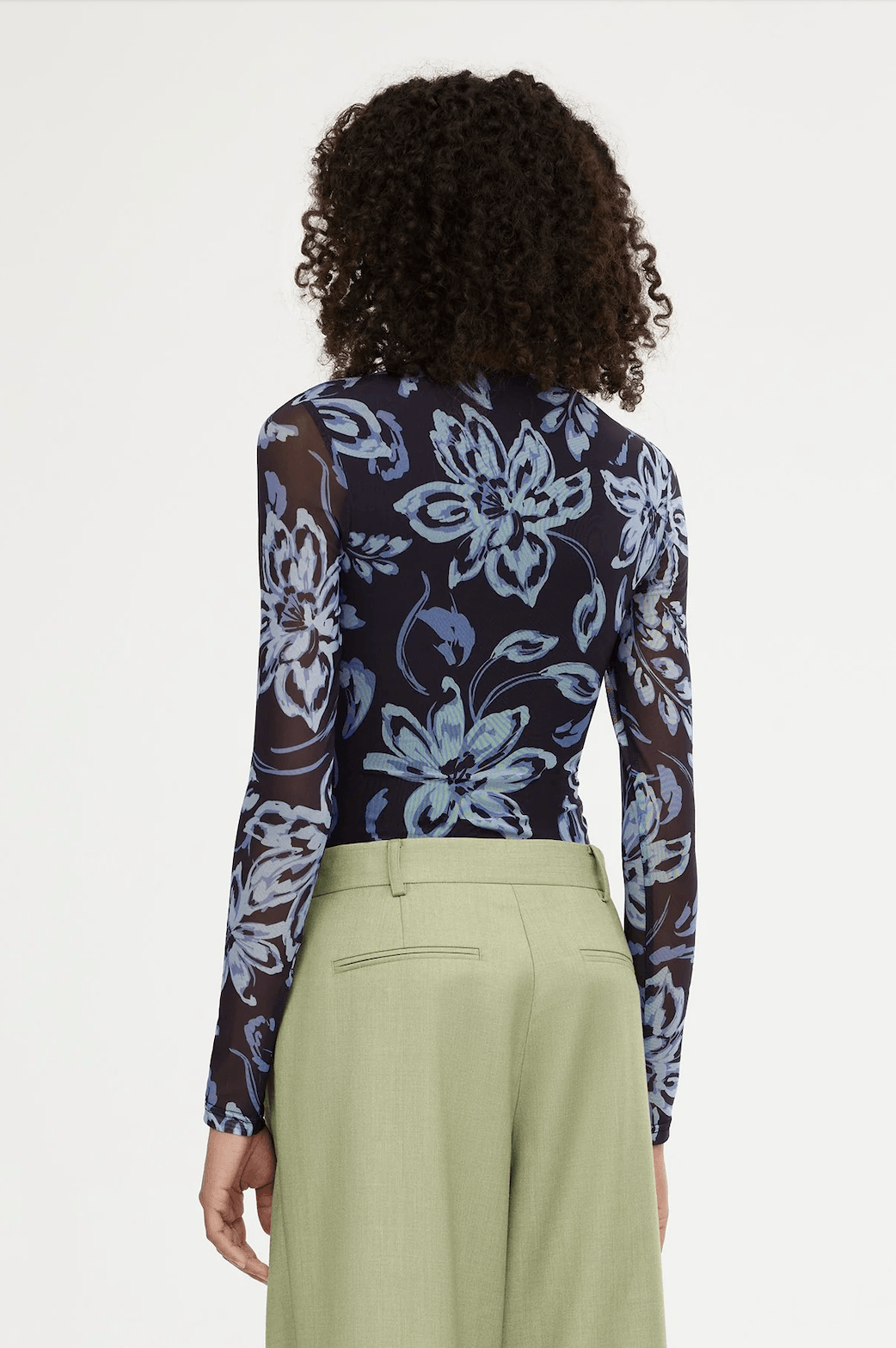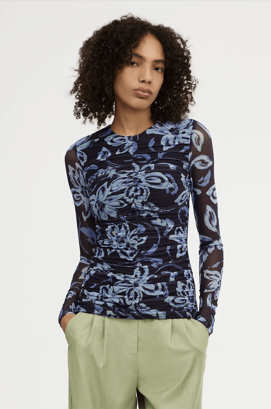 The Joan Long Sleeve Top in Dark Hibiscus is a fitted silhouette, crafted from a sheer look mesh fabrication. Complimented with lining through the bodice, high neckline and ruching through the centre front bodice