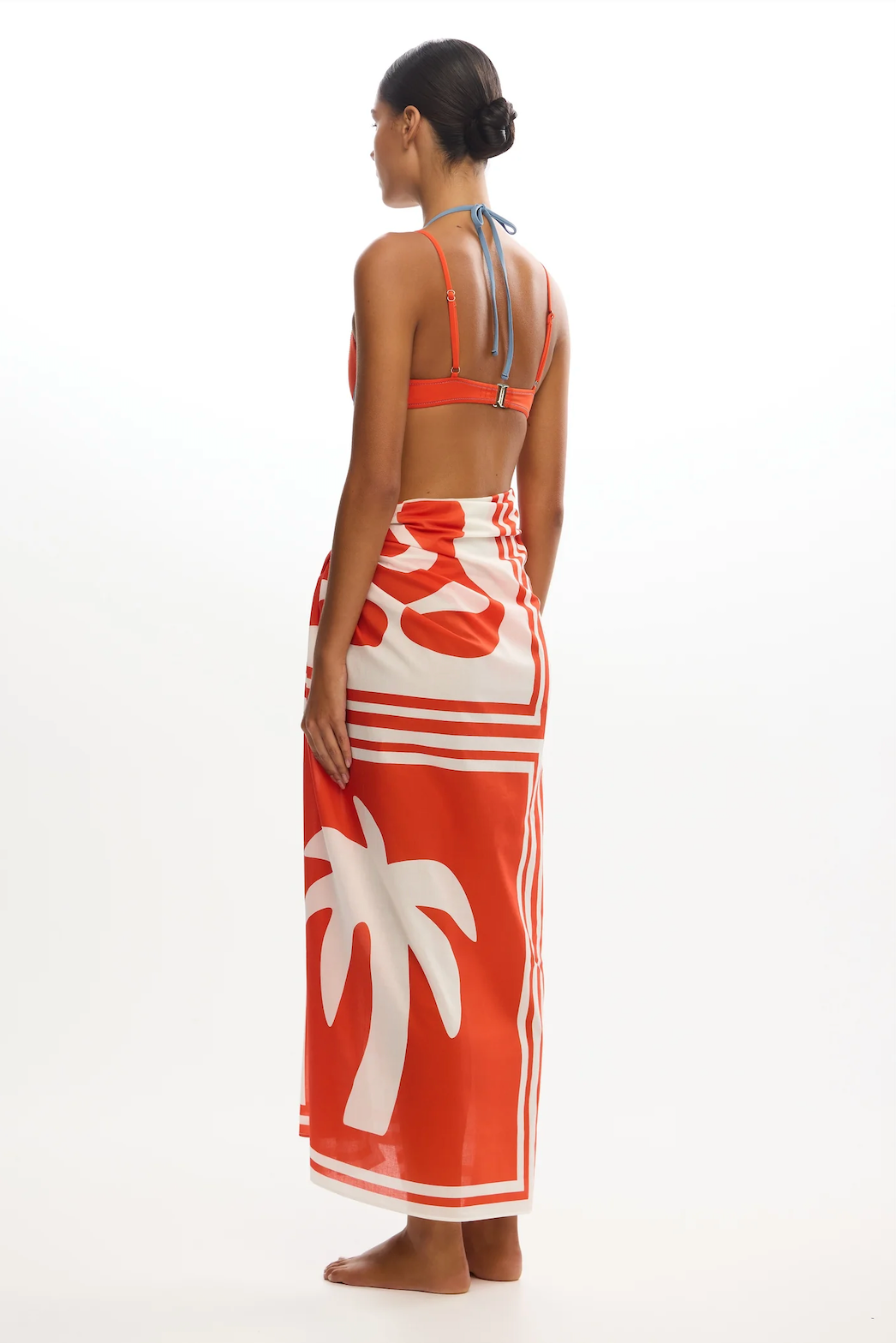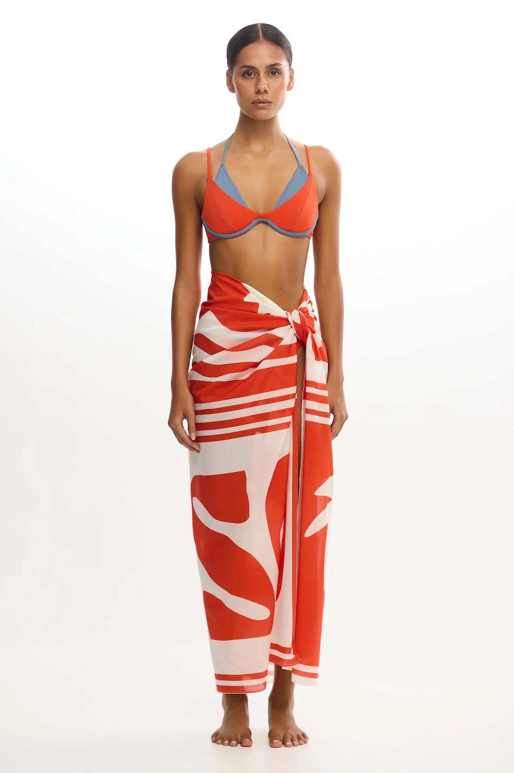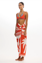 The Marcella Sarong in Spice Landscape is crafted from a lightweight cotton fabrication. Designed to style back with your swim pieces, this piece is perfect for warmer days in the sun