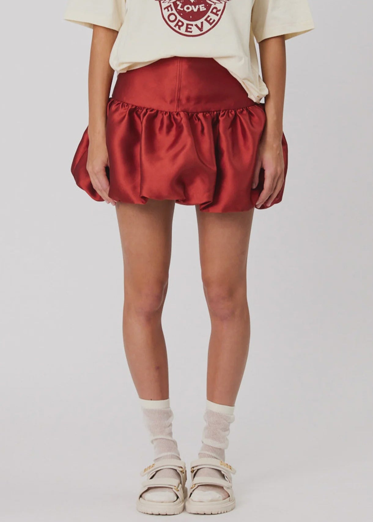 The Alexa Mini Skirt effortlessly combines playful style and comfort for a chic addition to your wardrobe. Featuring a hidden back zip closure with a bubble hem and a yoke panel for a flattering fit across the body.