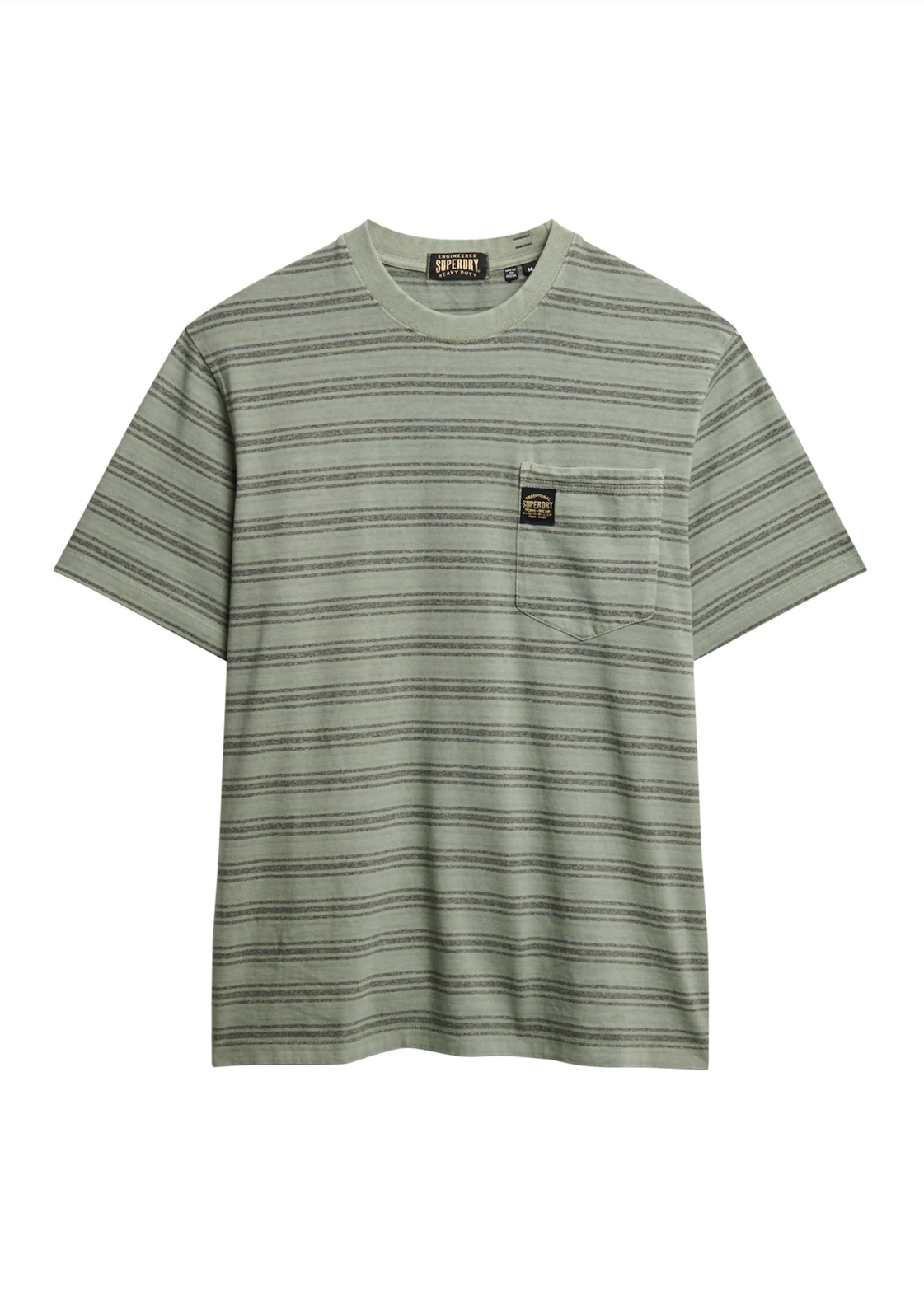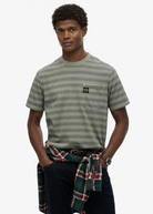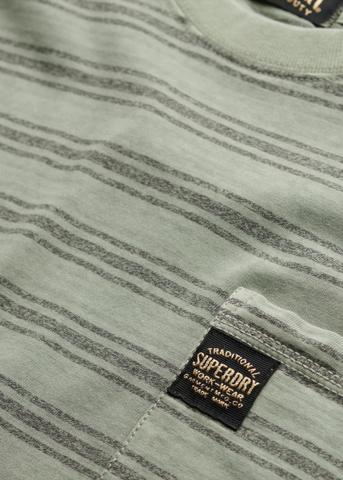SUPERDRY Contrast Stripe Pocket T-Shirt - Sage Green Stripe