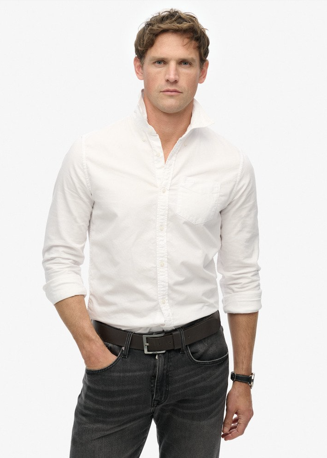 SUPERDRY Cotton Long Sleeve Oxford Shirt - Optic