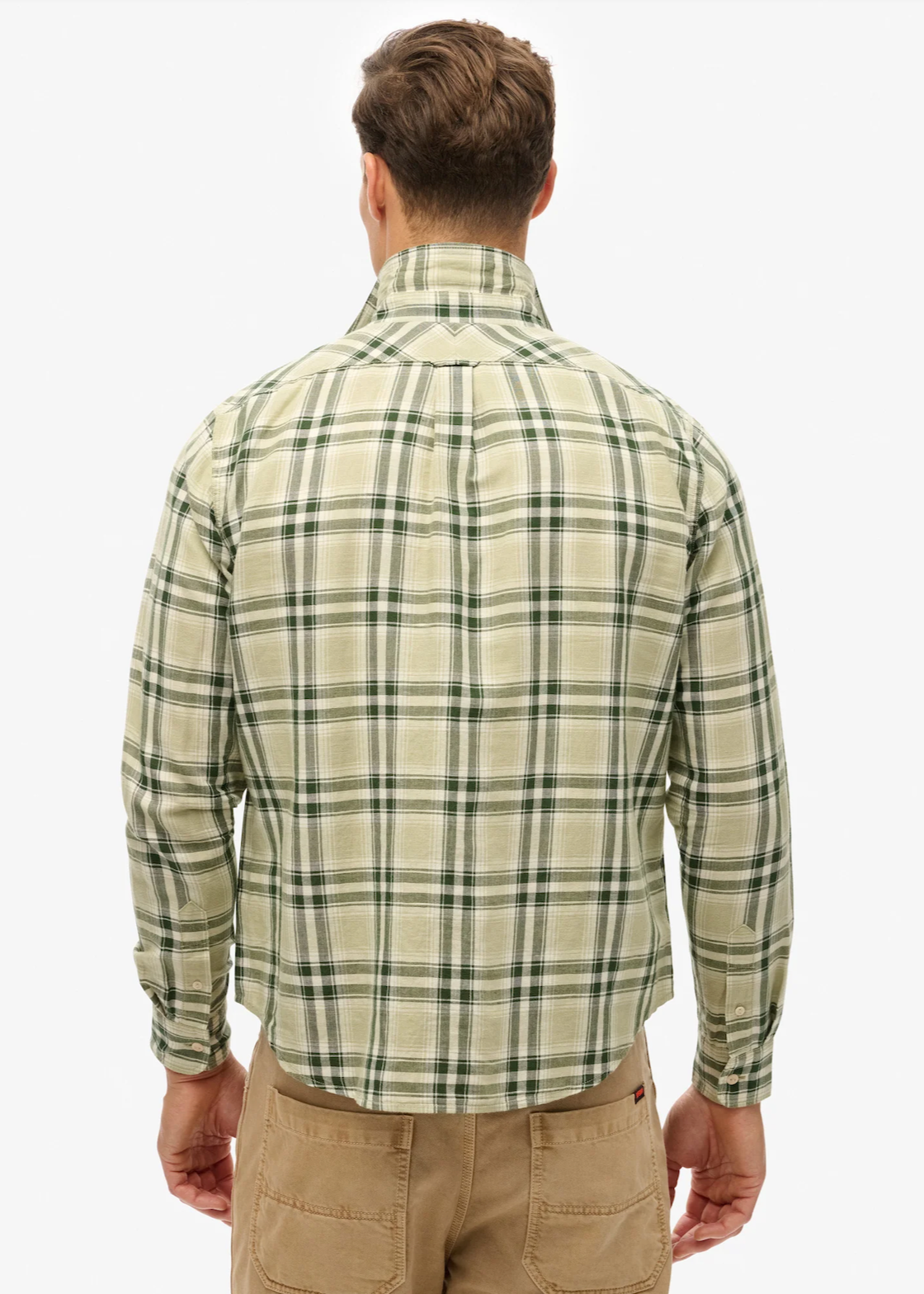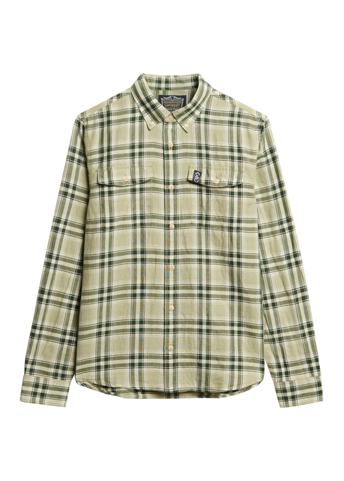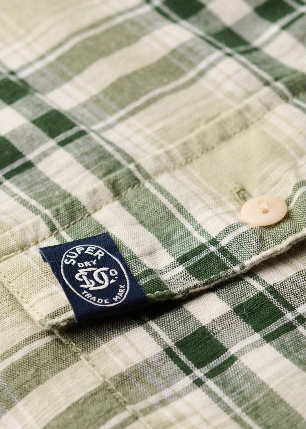 SUPERDRY Merchant Linen Check Shirt - Green Check