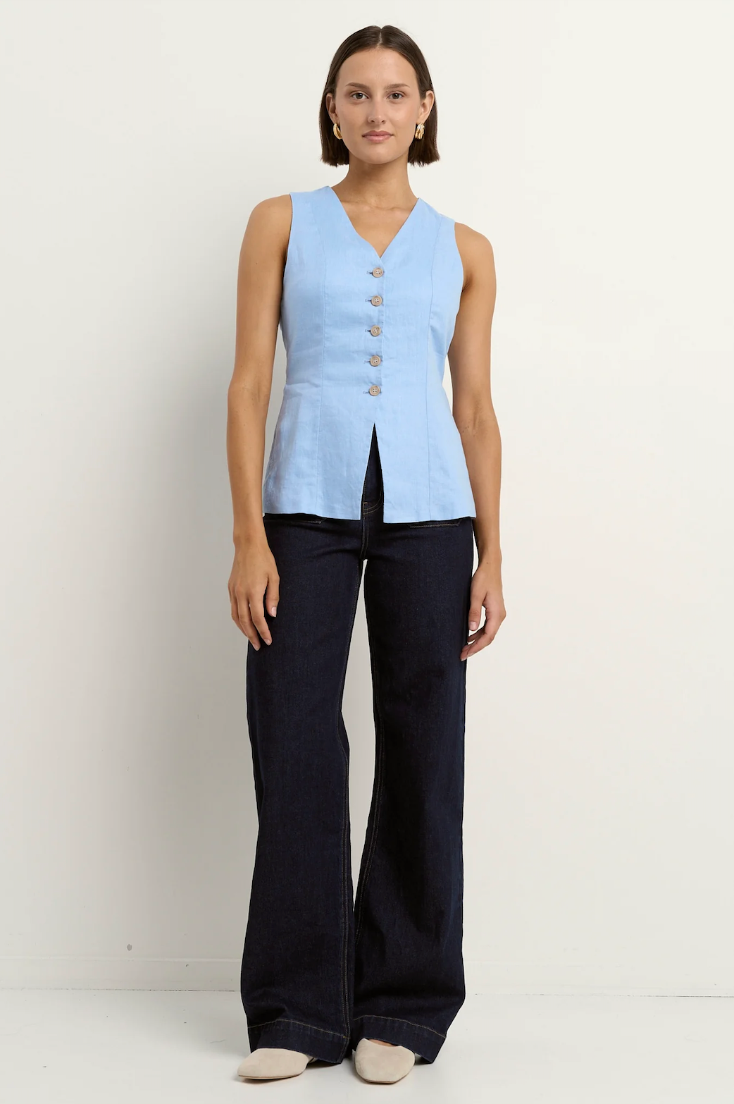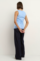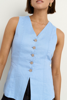 AMONG THE BRAVE Eiffel Linen Fitted Longline Vest - Pale Blue
