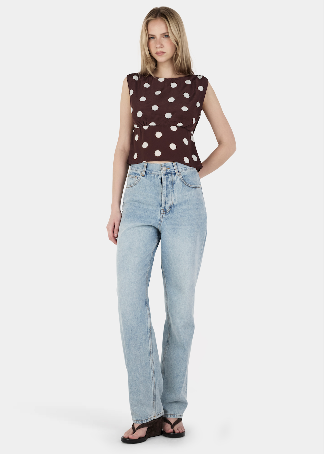The Kamila Top is a flattering top with a high, wide neckline and gathered shoulder seams for sublte texture and shape. Designed with adjustable back ties for a custom fit, this top is fully lined for a comfortable and polished finish.