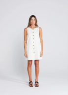 The Effortless Dress is made from embroidered cotton drill and features antique brass tacks and pockets. True to its name, it feels effortlessly cool as soon as you slip it on.
