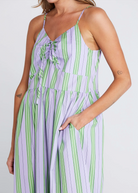 Introducing the Zinnia Dress! Crafted in a fun cotton stripe, this piece features a front tie that you can style into a bow. With adjustable straps and a drop waist, oh and I nearly forgot, pockets too of course!!