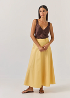A brand new maxi-skirt shape in thee most incredible new season colour.  This 100% cotton beauty is a stunning fit with flattering panels from waist to hem. Wear with the matching Reed Shirt for a statement look, or simply pair with your fave cami or tee for an elevated everyday vibe. This piece is truly versatile, equally suited to work and vacation. You will LOVE!