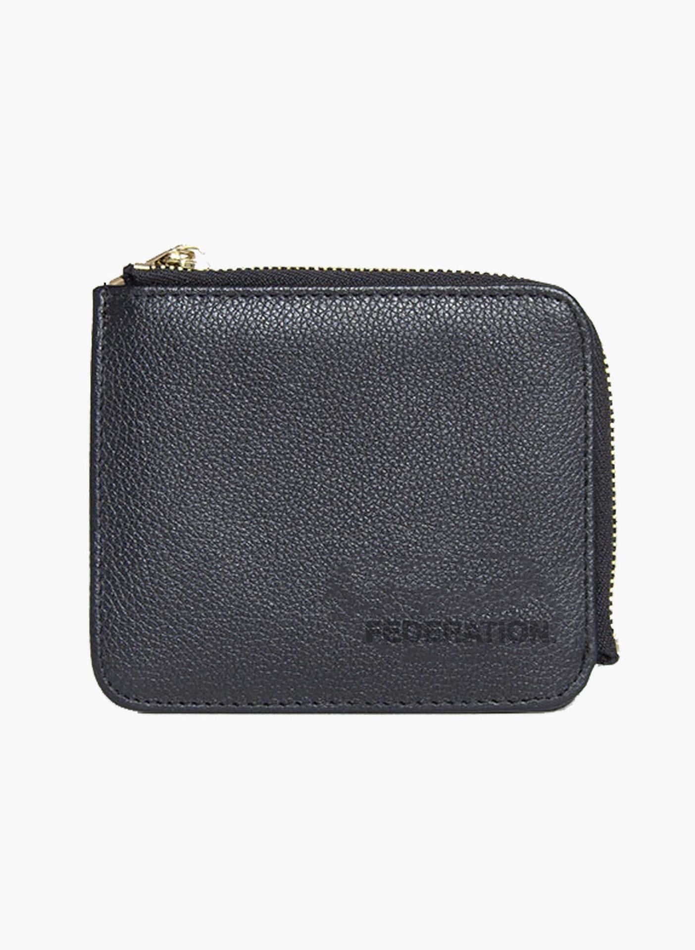 With a gold embossed Federation zip pull and embossed leather branding to complete the details. All wallets come in a white printed tie detail dust bag.
