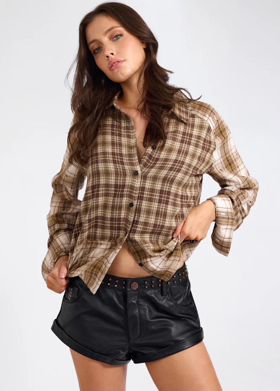 ONE TEASPOON Rodeo Patchwork Flannel Shirt - Rust