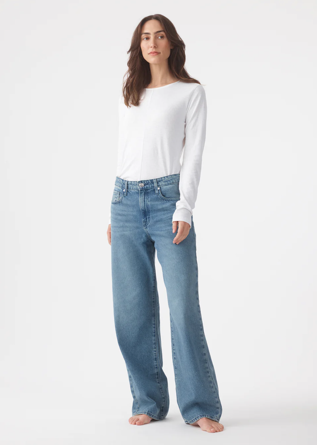 OUTLAND DENIM Olive Mid Slouchy Wide Jean - Marina Mid Blue