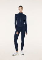The Highgate Zip Jacket in Dark Navy & Optic White is made from our most lightweight active fabric, Active Lite. This fitted active jacket features a zip front closure, zip up pockets, and a thumb hole opening on the sleeve. Designed to be worn when training or running, wear this jacket over activewear for an added layer of warmth.