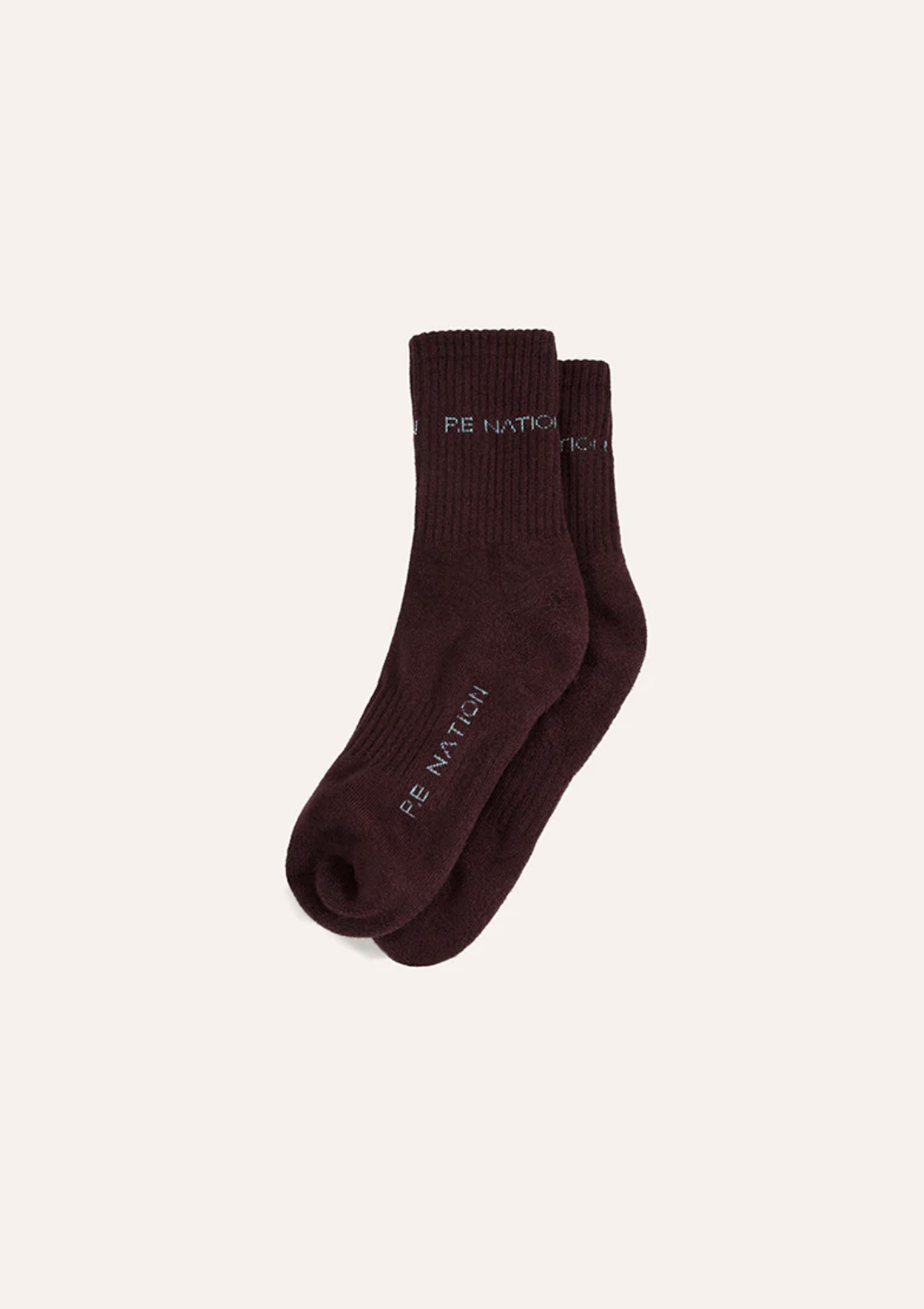 The Signature Sock in Cabernet is crafted from premium cotton with a soft, supportive feel made to wear on repeat. Designed to move through studio sessions, strength work and everyday styling, it blends comfort with subtle sport edge. Finished in a ribbed crew silhouette with signature P.E Nation branding, it adds a confident detail to any look. Style it with tonal active layers for a refined finish
