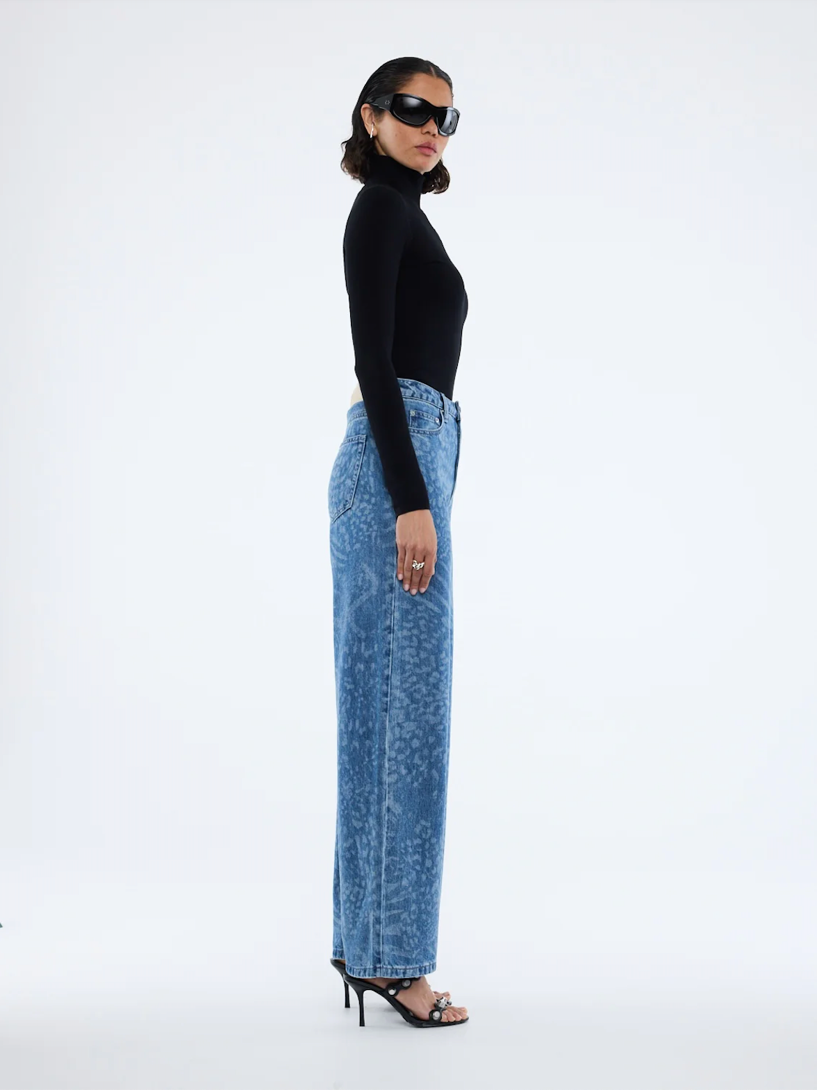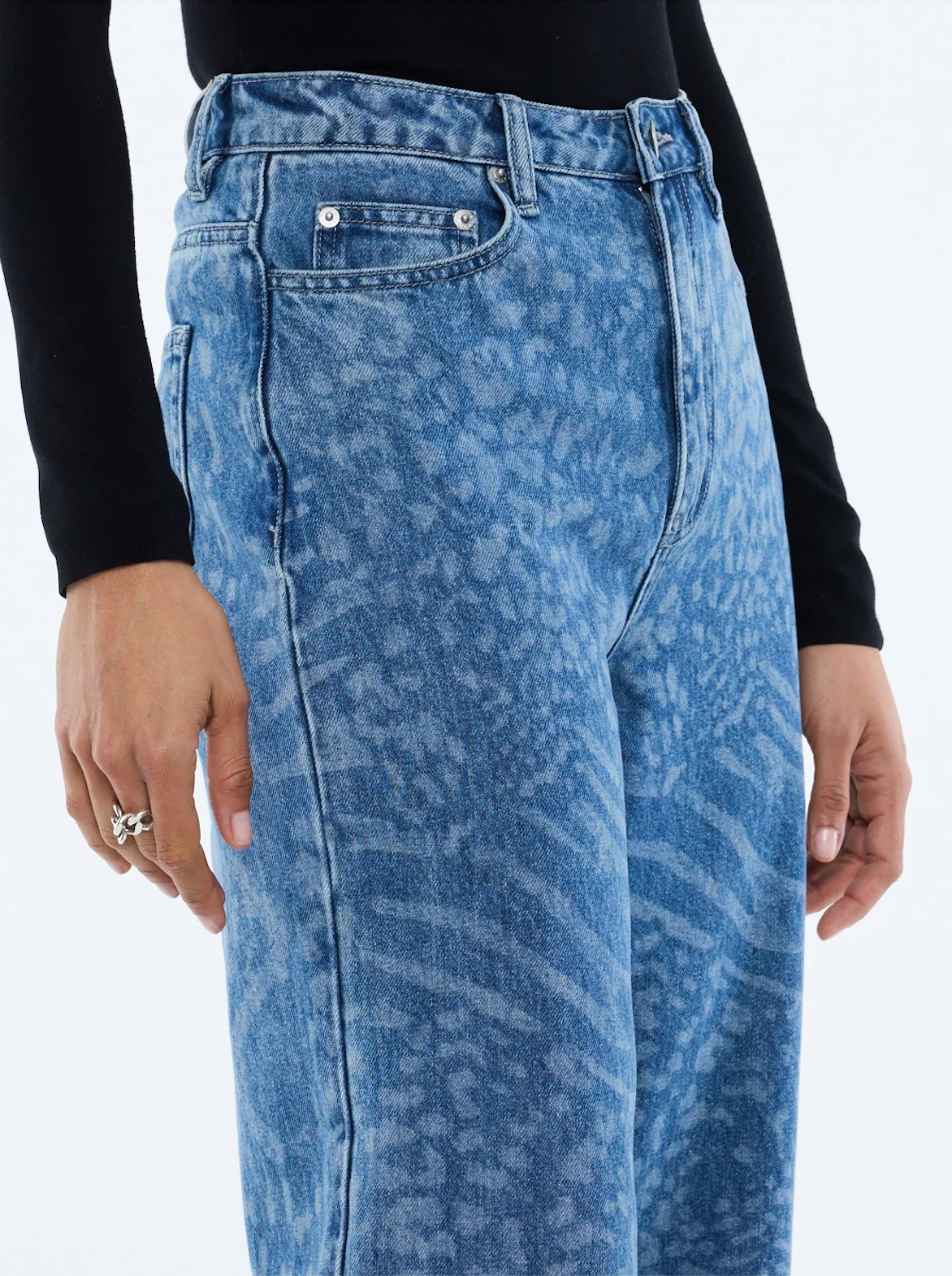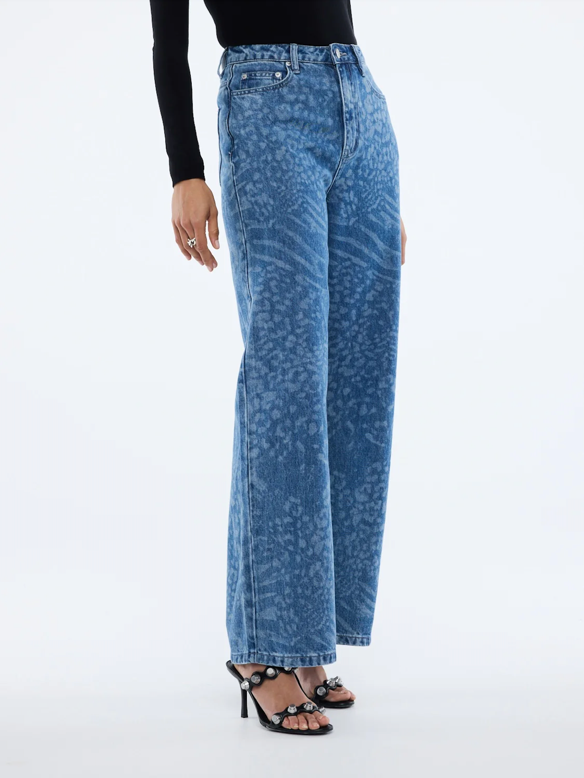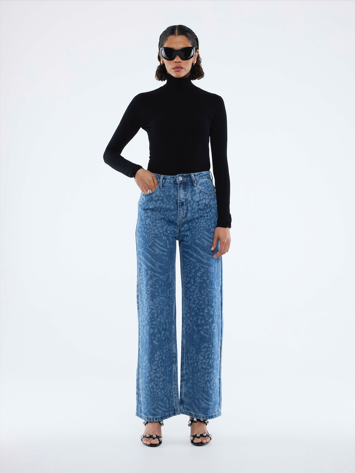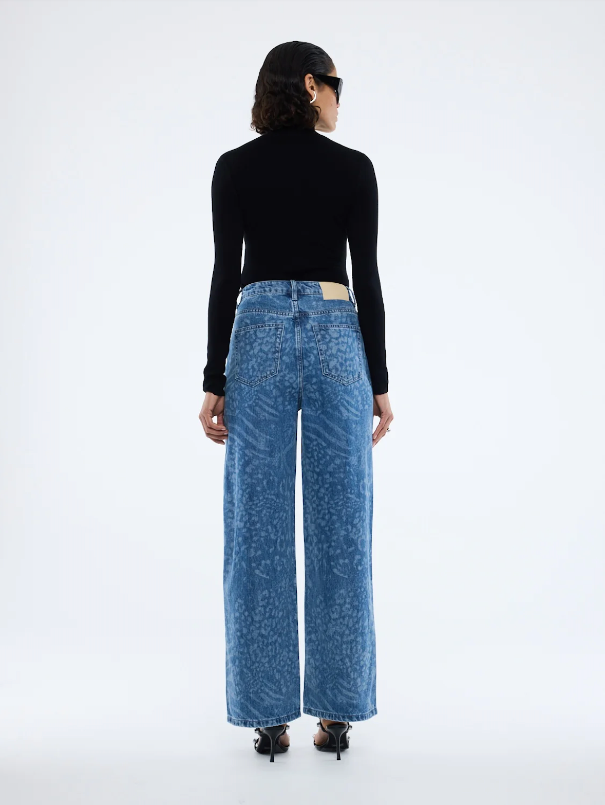 Statement print. Effortless shape.The Lisa Denim Jean is cut high at the waist with a wide-leg silhouette in a blue mixed animal-print colourway. Crafted from soft, draped denim, itʼs an elevated staple designed to anchor your wardrobe season after season.