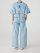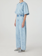 Our standout barrel leg jeans. The Luna Jean sits high on the true waist, is relaxed through the hip and leg, with a barrel leg profile that finishes at the top of the shoe. Featuring side pockets and size panel details. Crafted premium rigid denim.