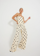The Sophia Pant by PASDUCHAS is crafted from rayon crepe featuring an exclusive polka dot print. Designed to sit firmly at the true waist with a flat front and functional belt loops, it falls to a wide, full-length leg. Finished with a centre-back invisible zipper for comfort and ease of fit. Pair with the Sophia Cami for a chic matching set that can be worn day to night.