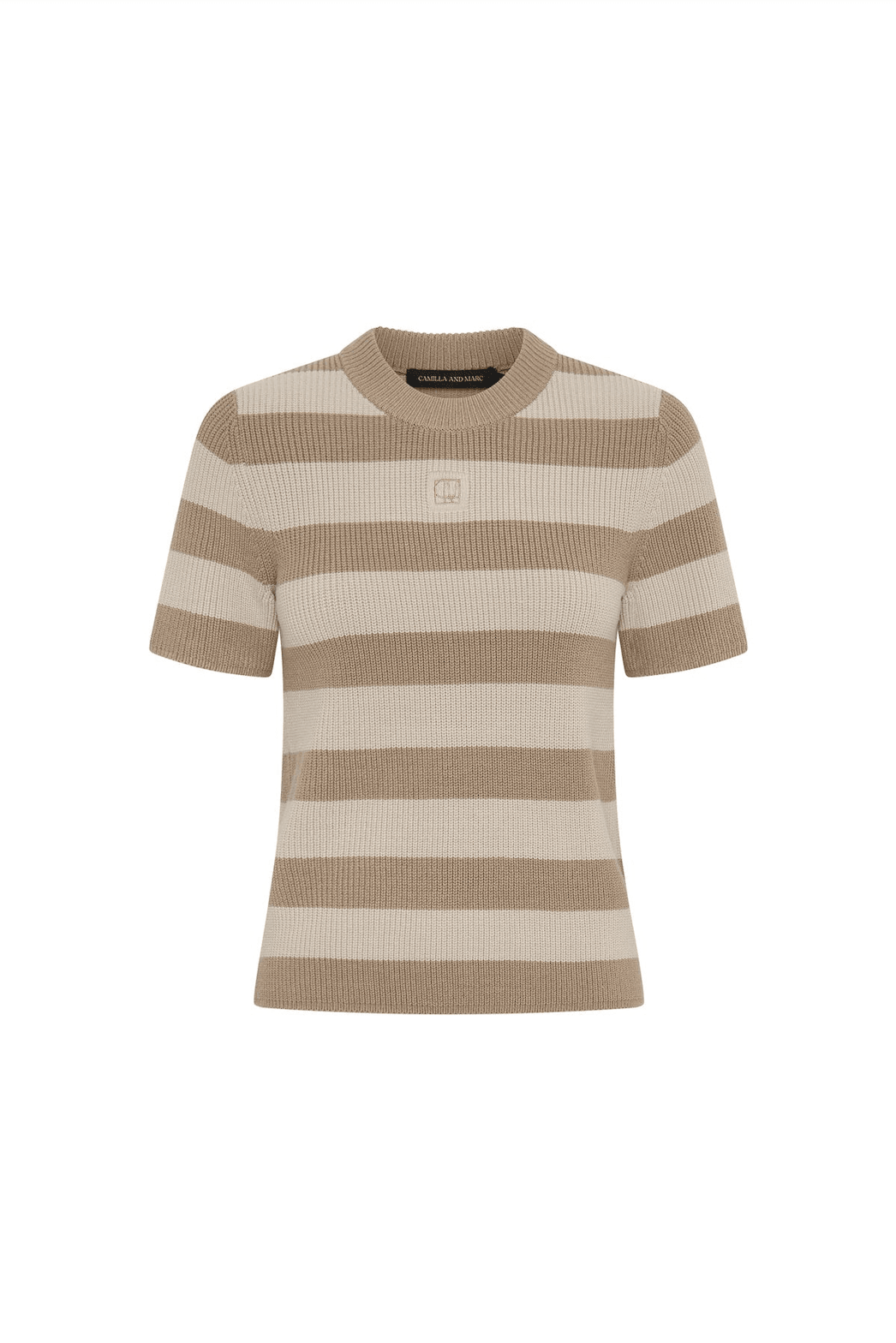 - CAMILLA AND MARC Umi Knit Tshirt in Tan and Cream