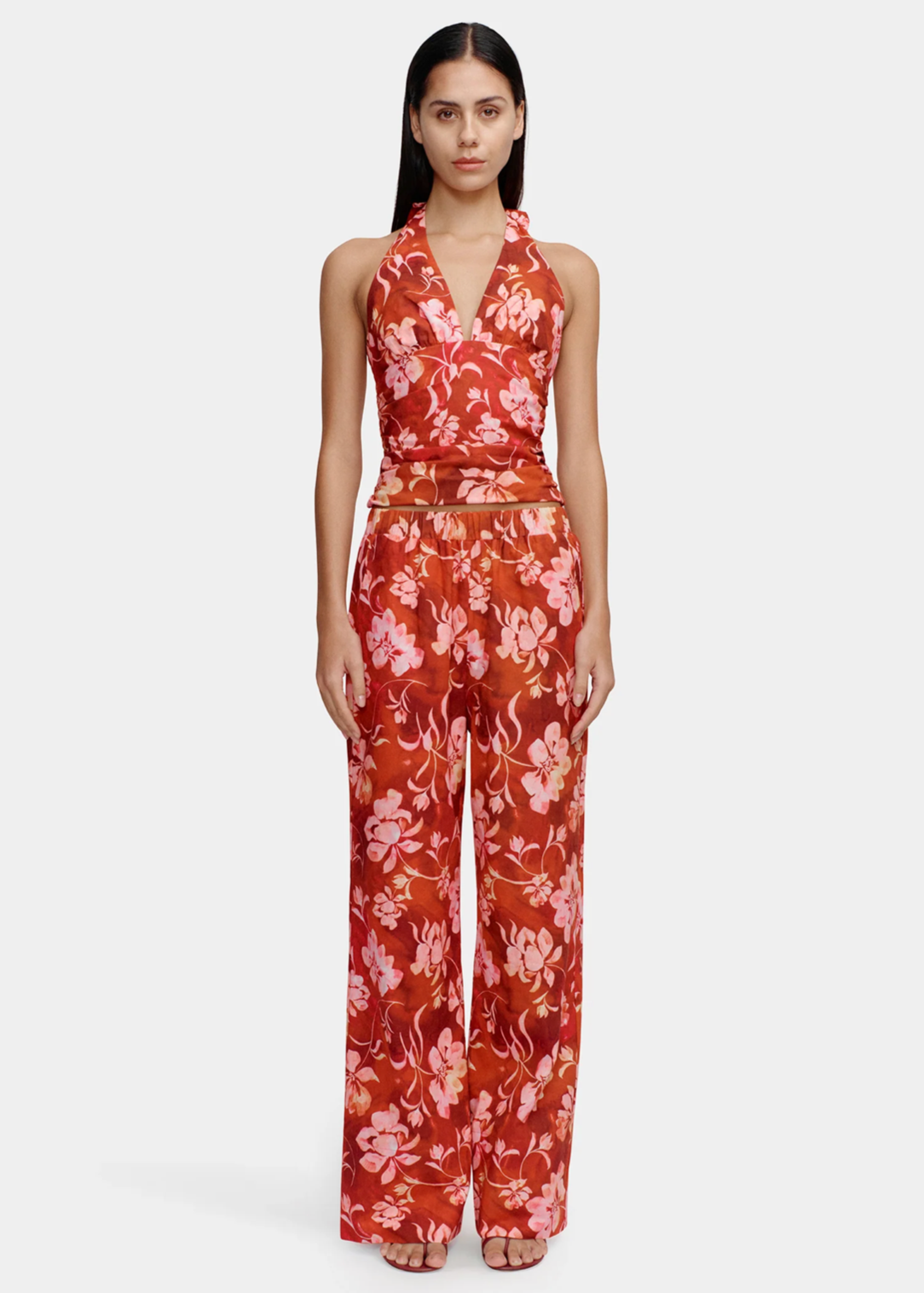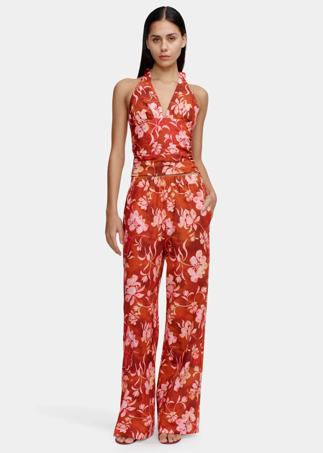 The Downtown Pant are a high rise, full length pant with an elasticised waist and side pockets. Cut from a breathable Cotton/Linen blend perfect for holiday lounging. Pair with the matching Viva Top for a fresh printed set