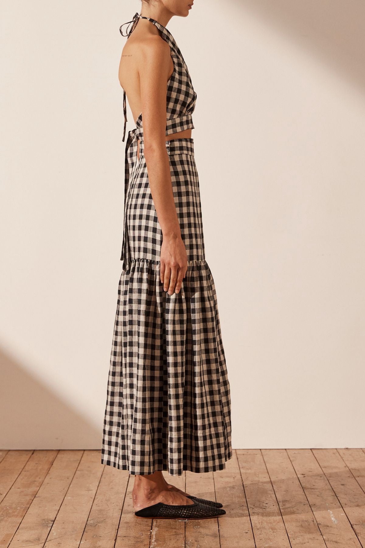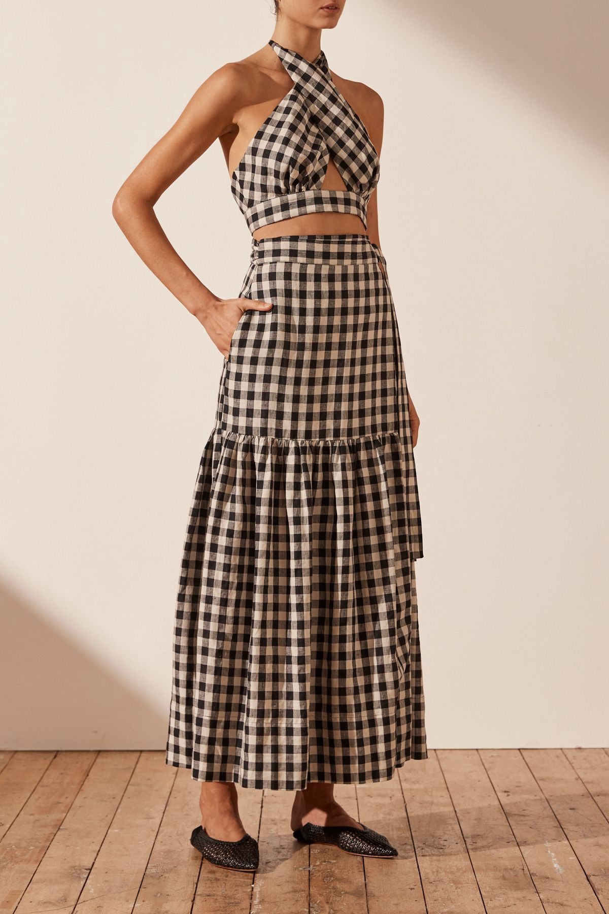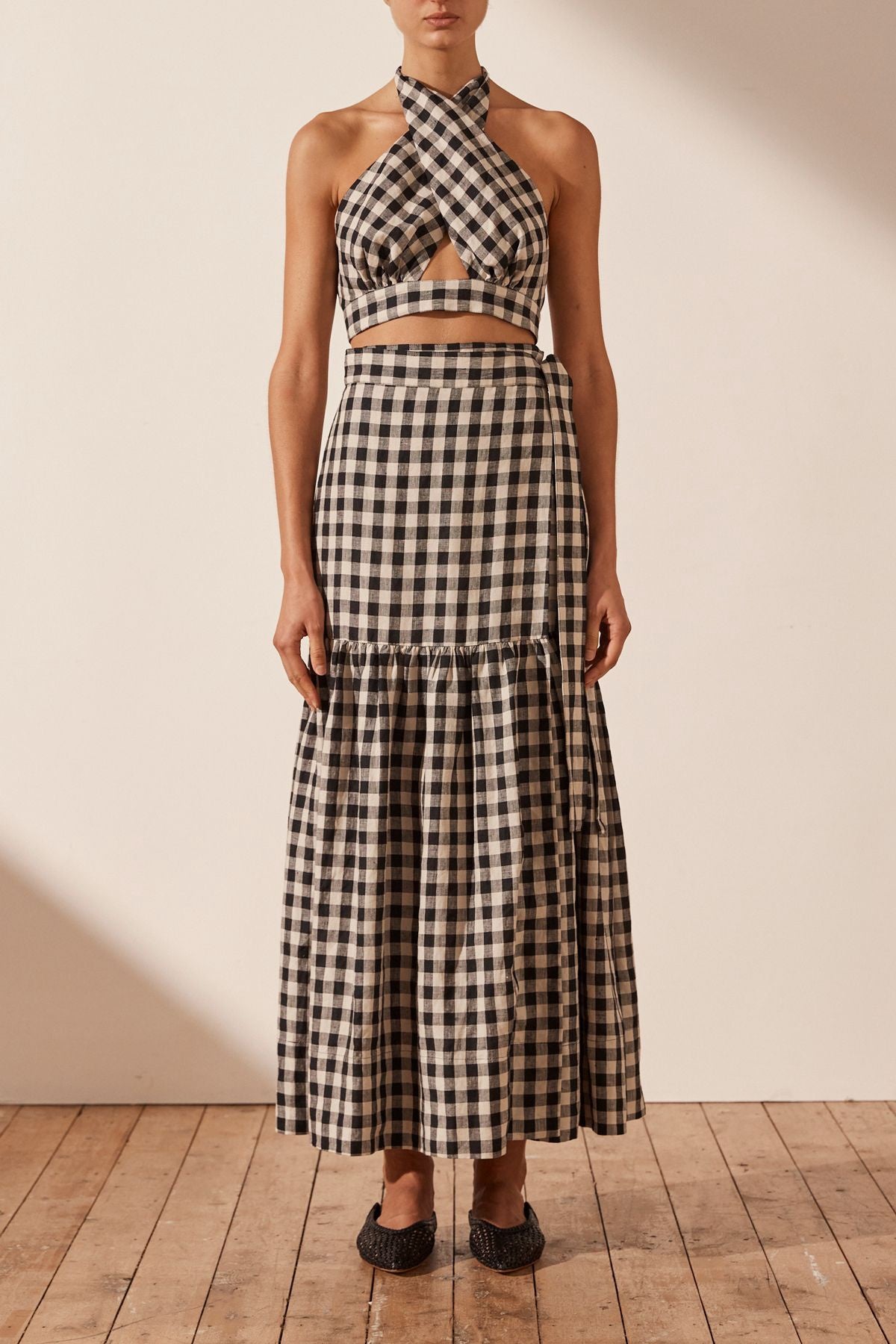SHONA JOY Aimee Linen Wrap Maxi Skirt - Black/Natural