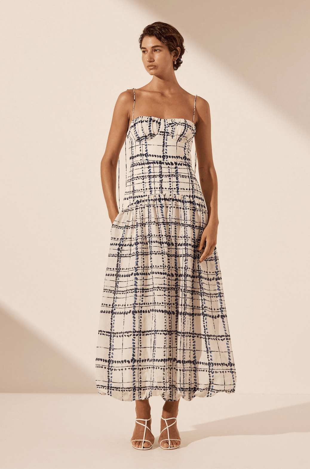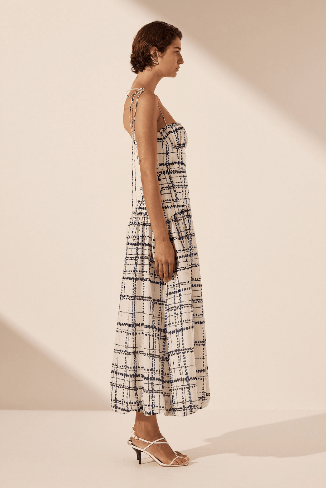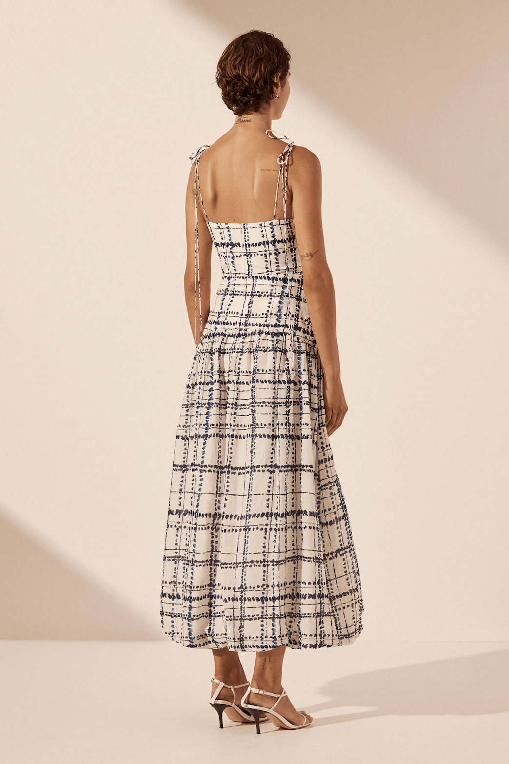 SHONA JOY Nico Gathered Bubble Midi Dress - Deep Navy/Ivory
