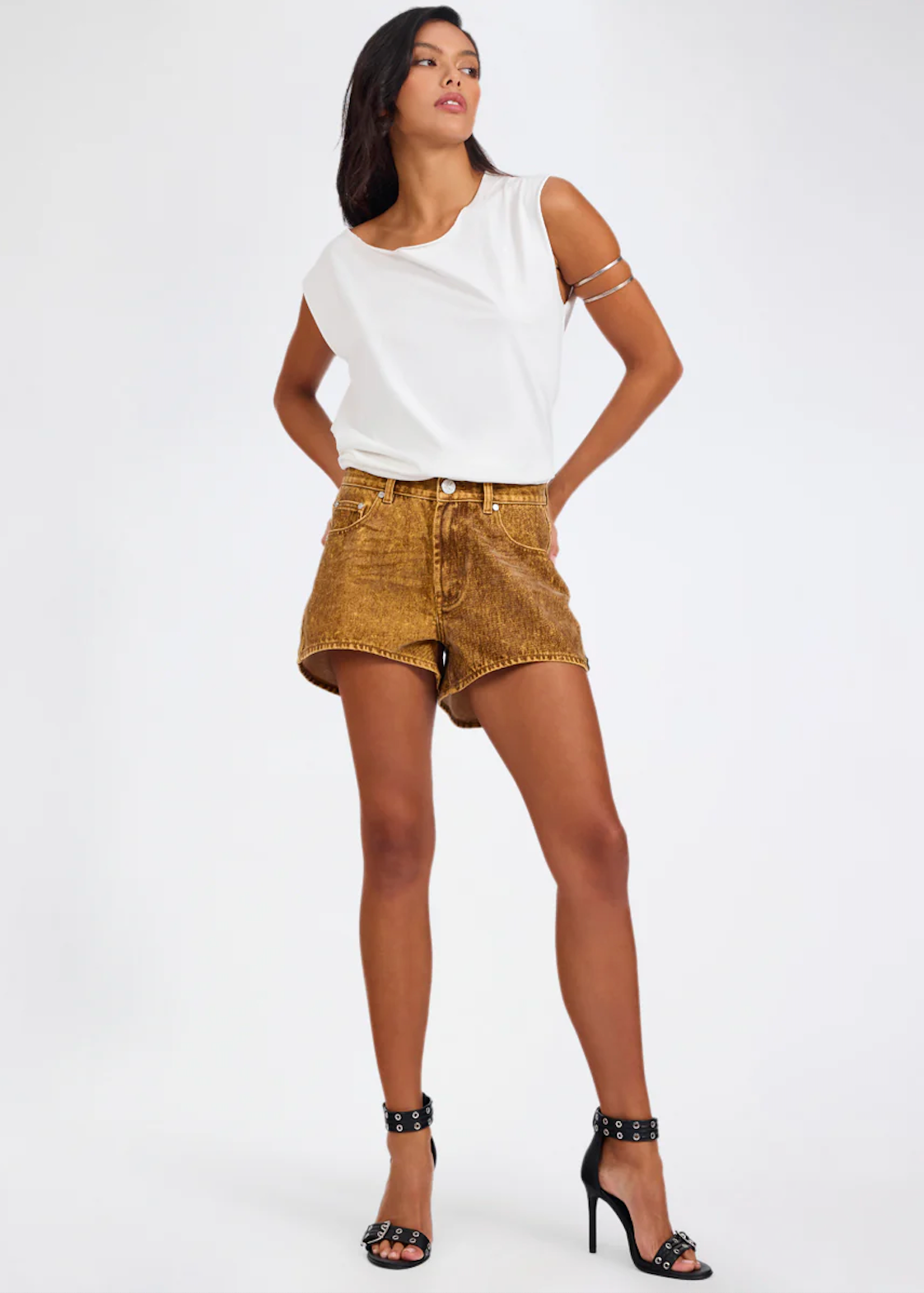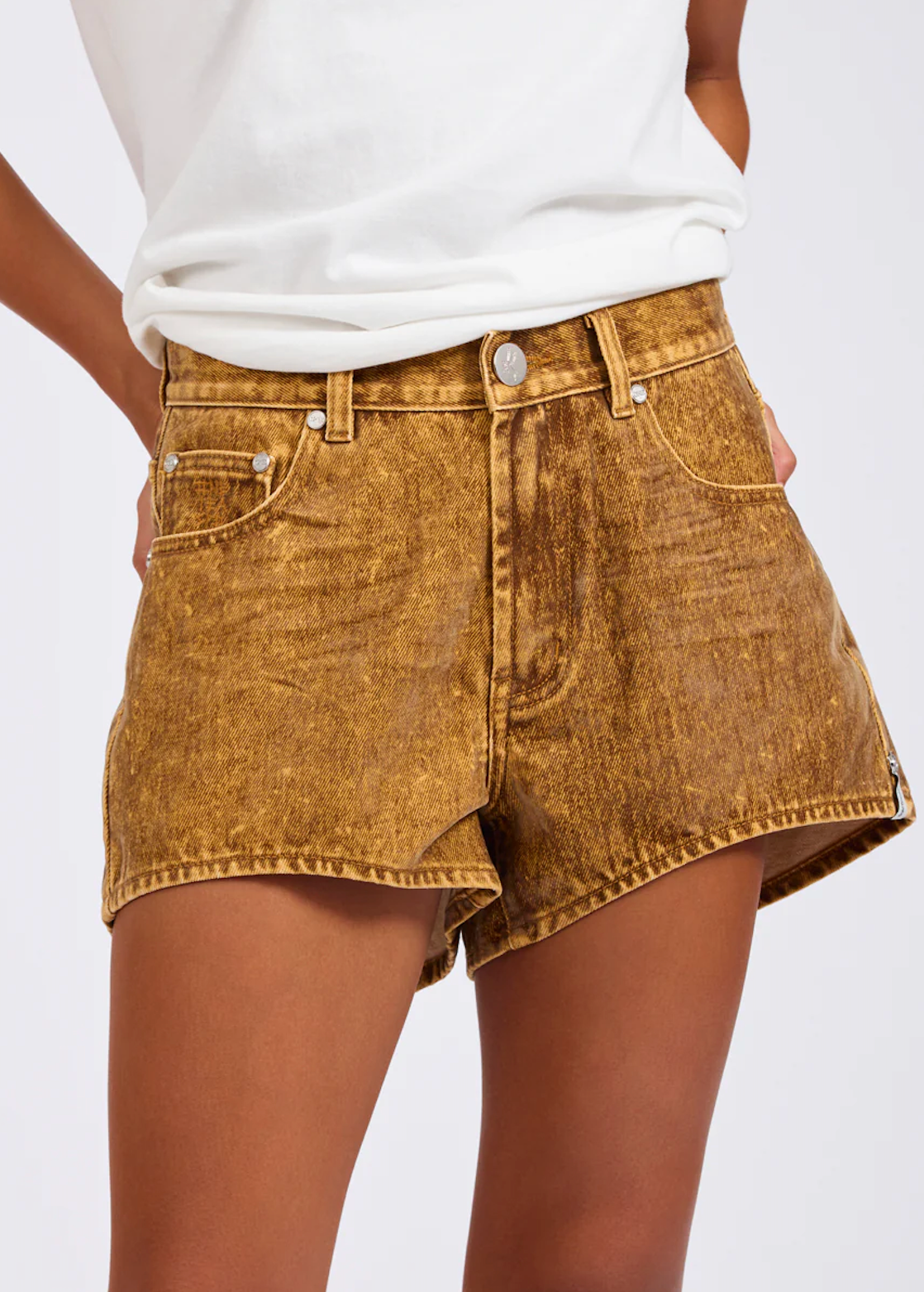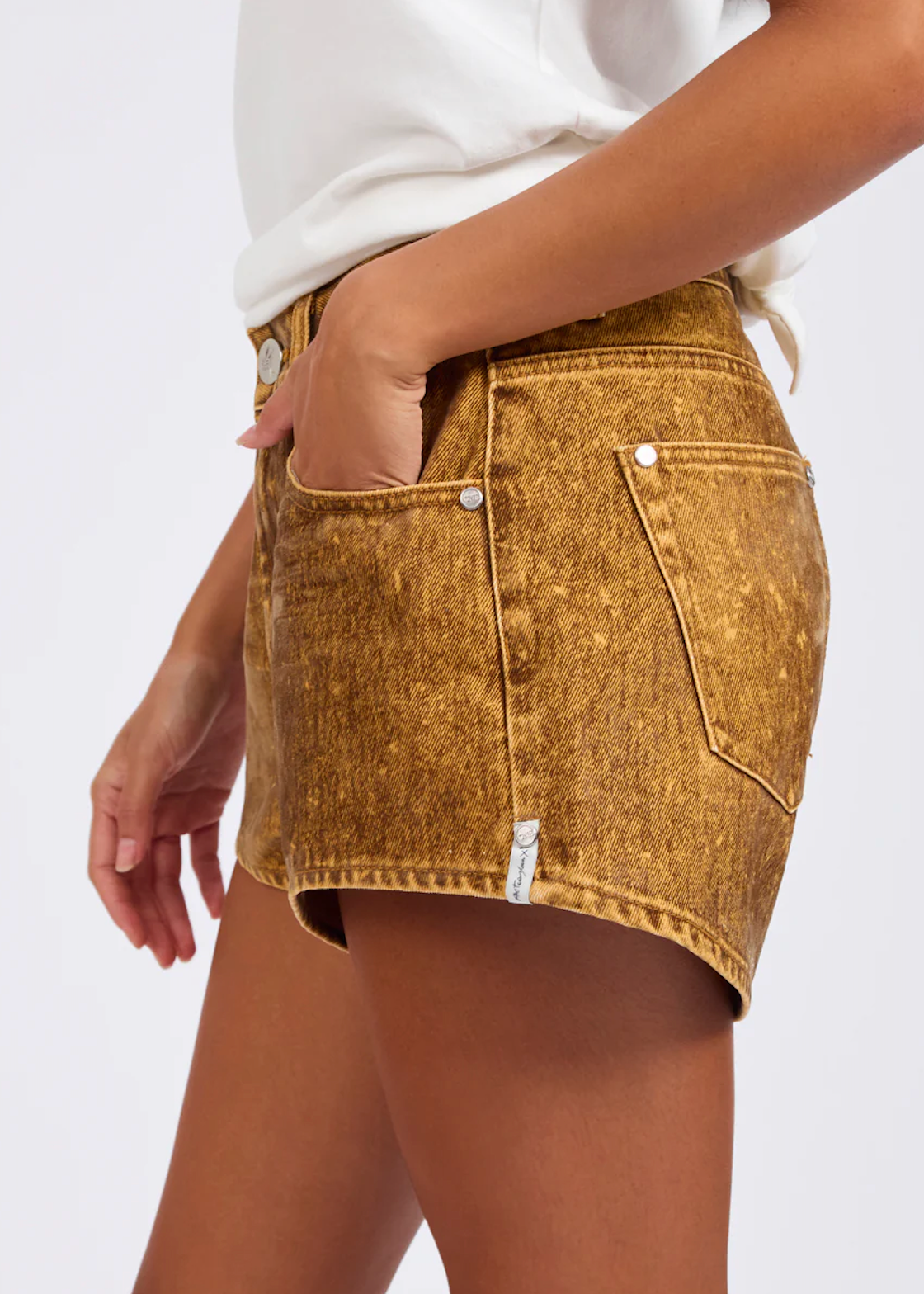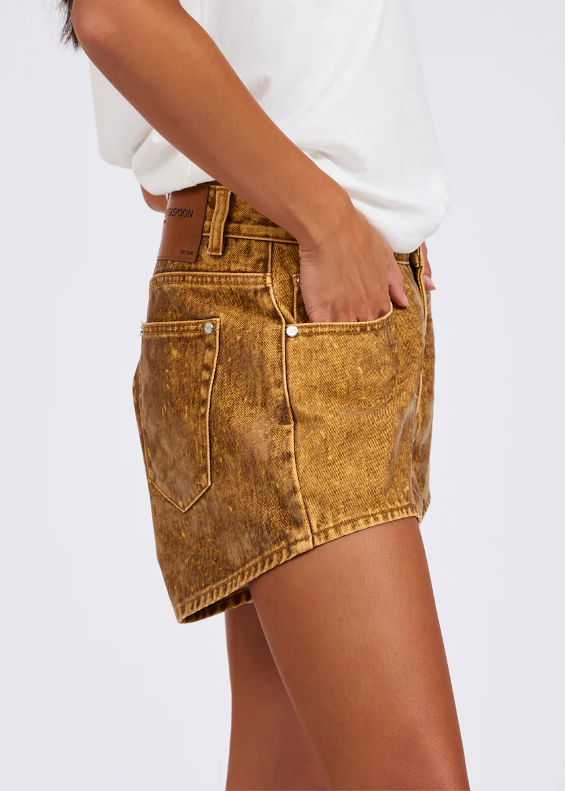 ONE TEASPOON Truckers Mid Waist Relaxed Flocked Denim Shorts - Burnt Tobacco