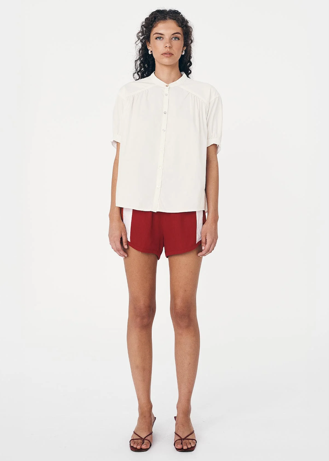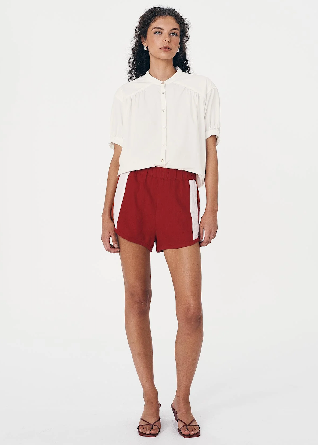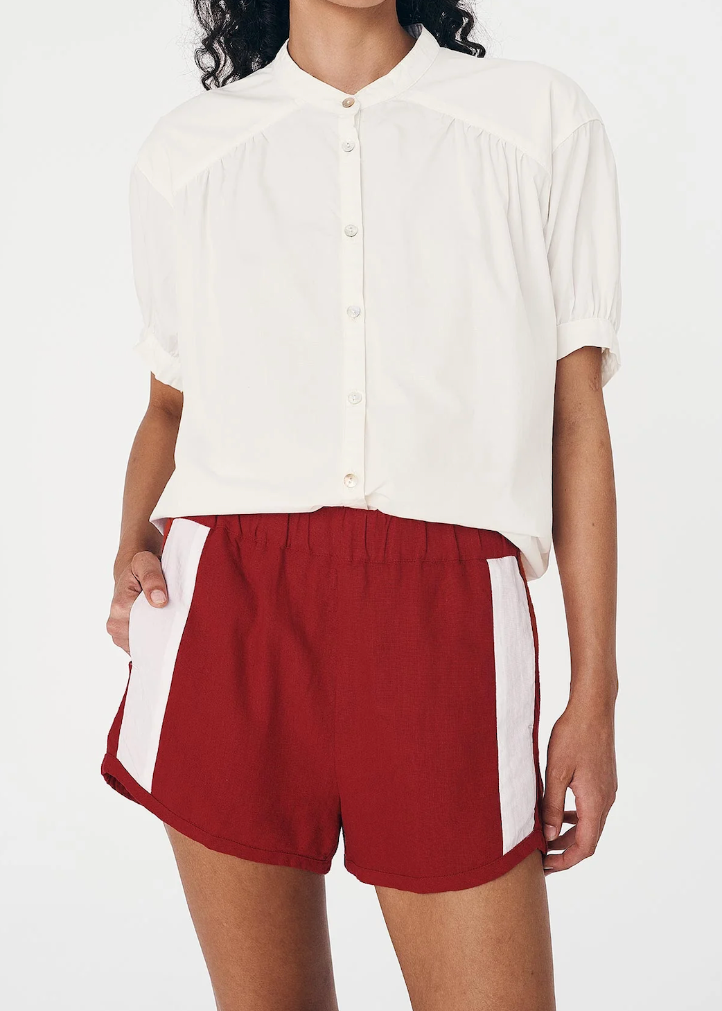 Curved hems and contrast side detailing set the Simone Shorts apart. Relaxed through the leg with an elastic waist and side seam pockets.