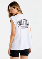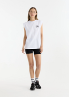 The Ines Tank in White is made from soft cotton jersey with a relaxed fit. Its sleeveless design features bold front and back graphics. Pair with joggers for a sporty, casual outfit.
