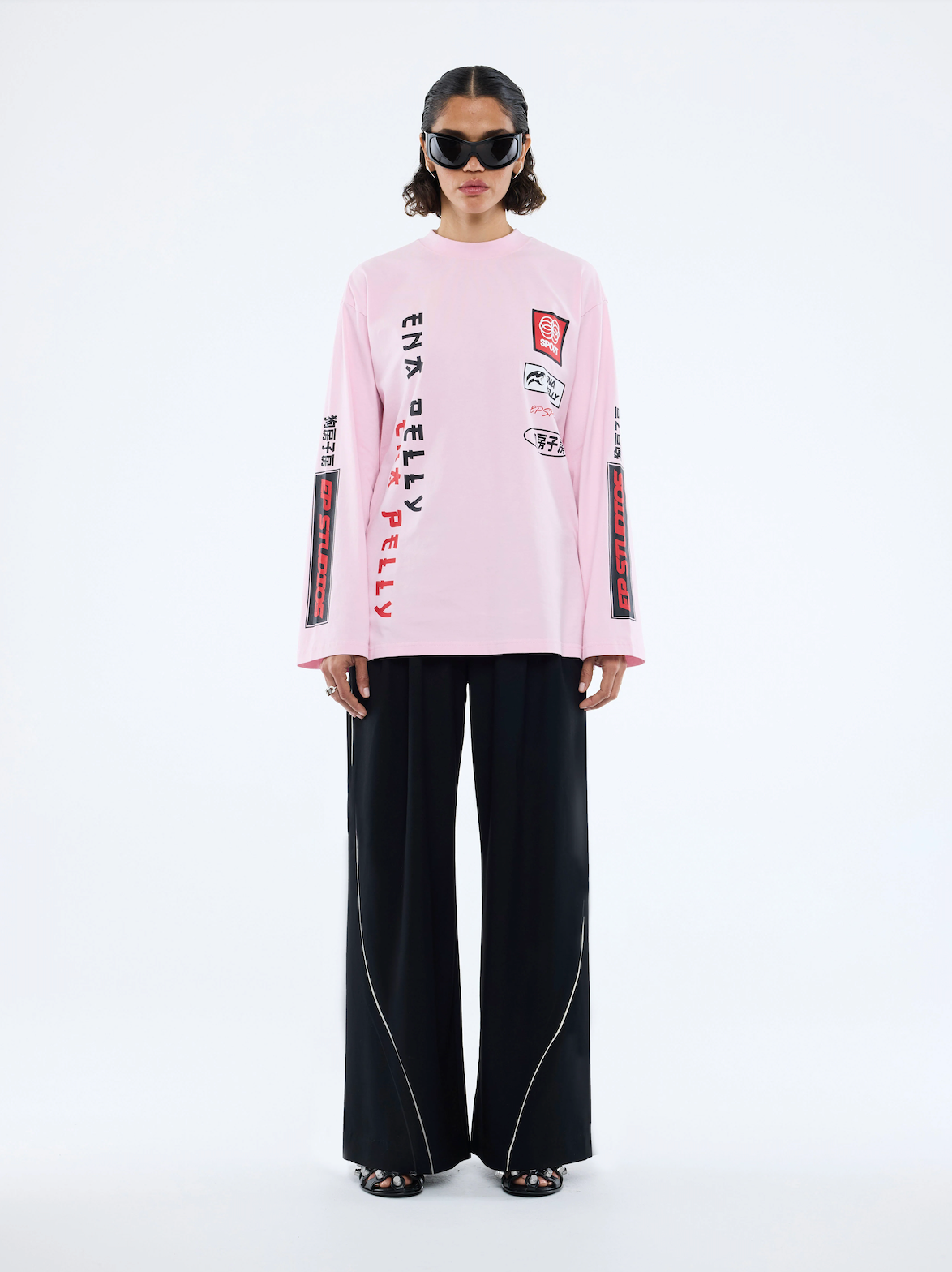 ENA PELLY Street Signs Long Sleeve Tee - Pink