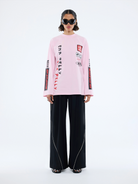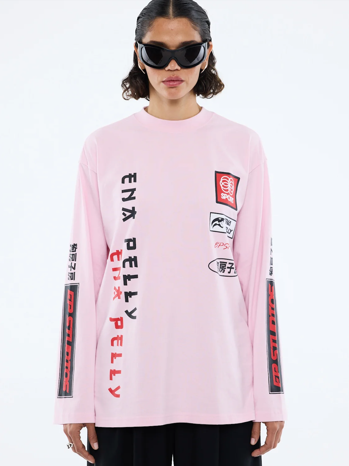The Street Signs Long Sleeve Tee is cut oversized for a relaxed, drop shoulder silhouette. Finished in pink with bold, motto-inspired graphics, it delivers statement street energy to off-duty styling.