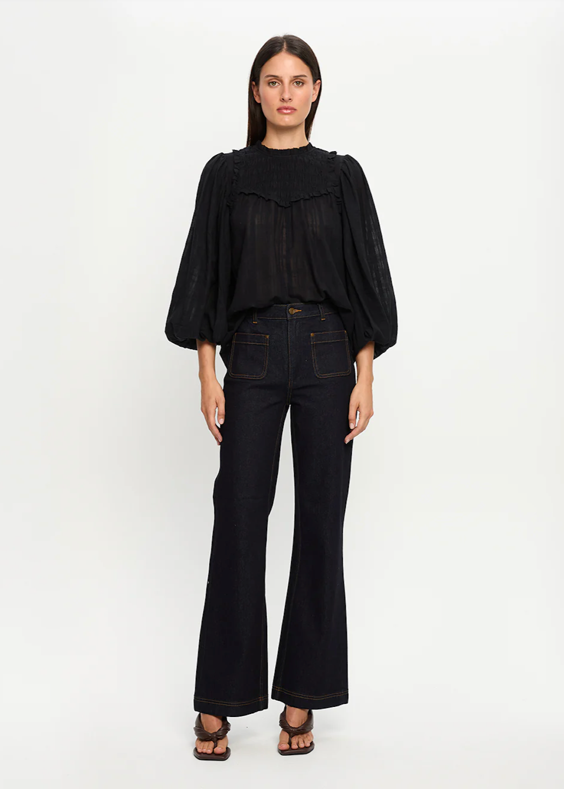 - Shired yoke with ruffle detail