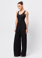 The Bliss Bodysuit in Black is a sleek, form-fitting fashion essential designed for effortless styling. Crafted from soft premium Lycra with a subtle sheen, it features a bra-friendly low scoop neckline at the front and back, a sleeveless cut, and a high-cut leg and g-string for a streamlined silhouette. Designed for a seamless fit, it layers effortlessly under trousers, skirts, or denim for a smooth silhouette. Both versatile and timeless, this piece transitions with ease from day to night—perfect for modern, on-trend dressing.