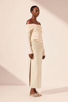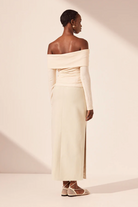 SHONA JOY Beau Off Shoulder Twist Front Top - Macadamia