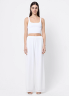 Relaxed elegance defines the Free Falling Pant in White. Crafted from a soft, premium jersey fabrication, this wide-leg silhouette offers fluid movement and all-day comfort. Designed with an elasticated waistband and functional inseam pockets, the style is fully lined for added coverage and structure. A timeless wardrobe staple that transitions effortlessly between settings — pair it with a tank for elevated minimalism, or style it with the Free Falling Top for a cohesive monochromatic ensemble.