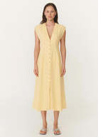 ROWIE Mira Linen Midi Dress - Lemon