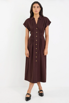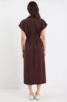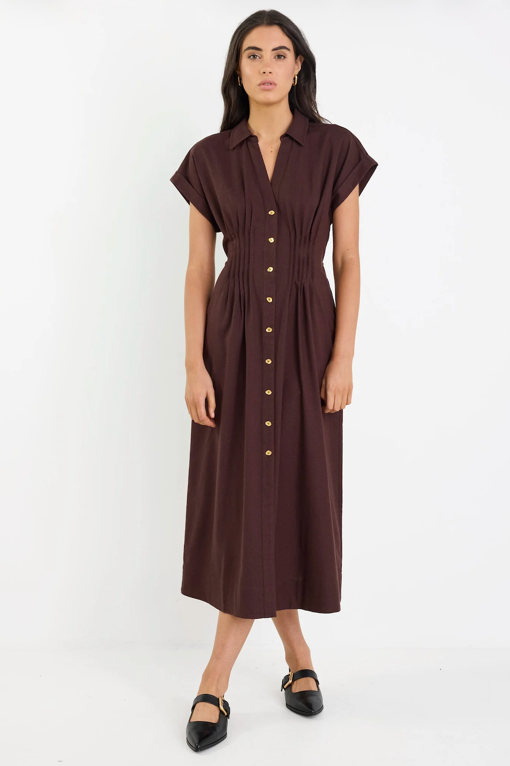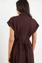 STORIES BE TOLD Carriage Sleeveless Pintuck Midi Shirt Dress - Chocolate