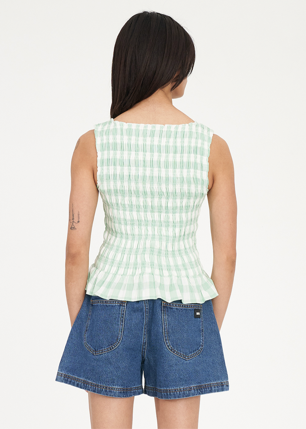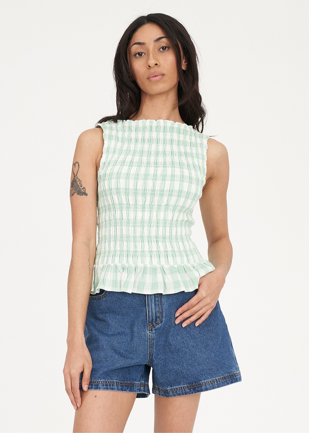 HUFFER Celine Gigi Shirred Top - Matcha/Chalk