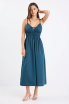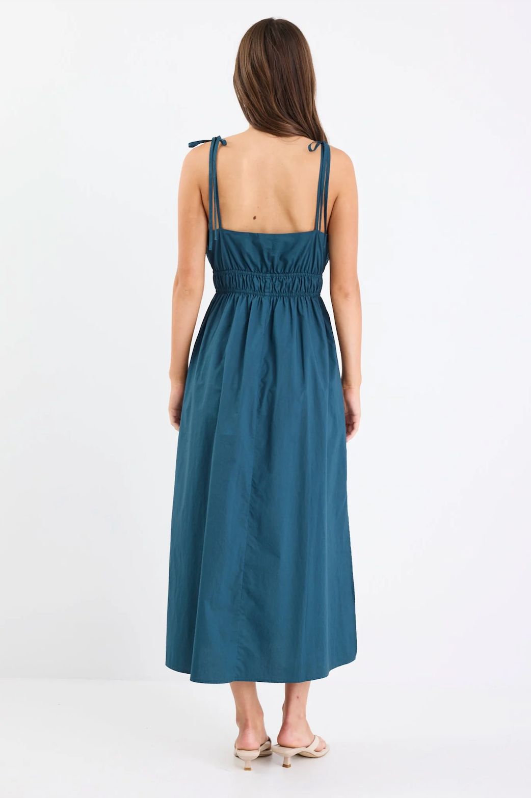 AMONG THE BRAVE Cotton Strappy Midi Dress - Petrol