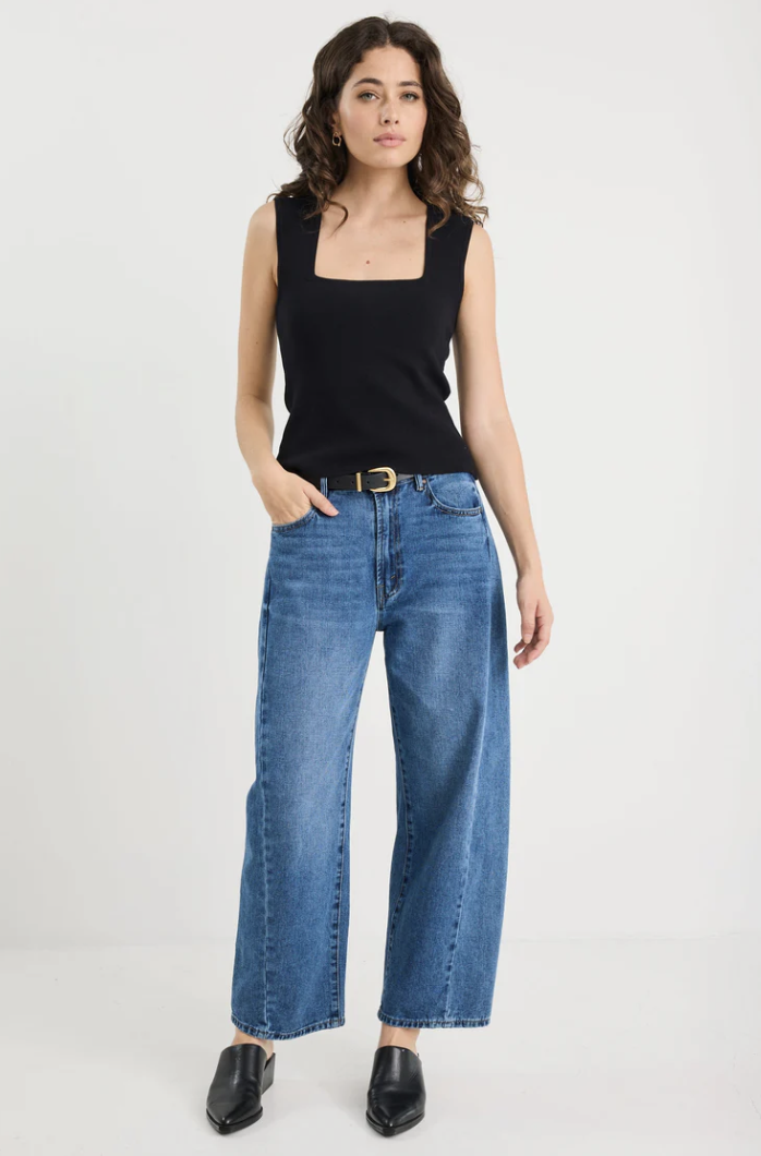 AMONG THE BRAVE Purpose Square Neck Sleeveless Knit Top - Black